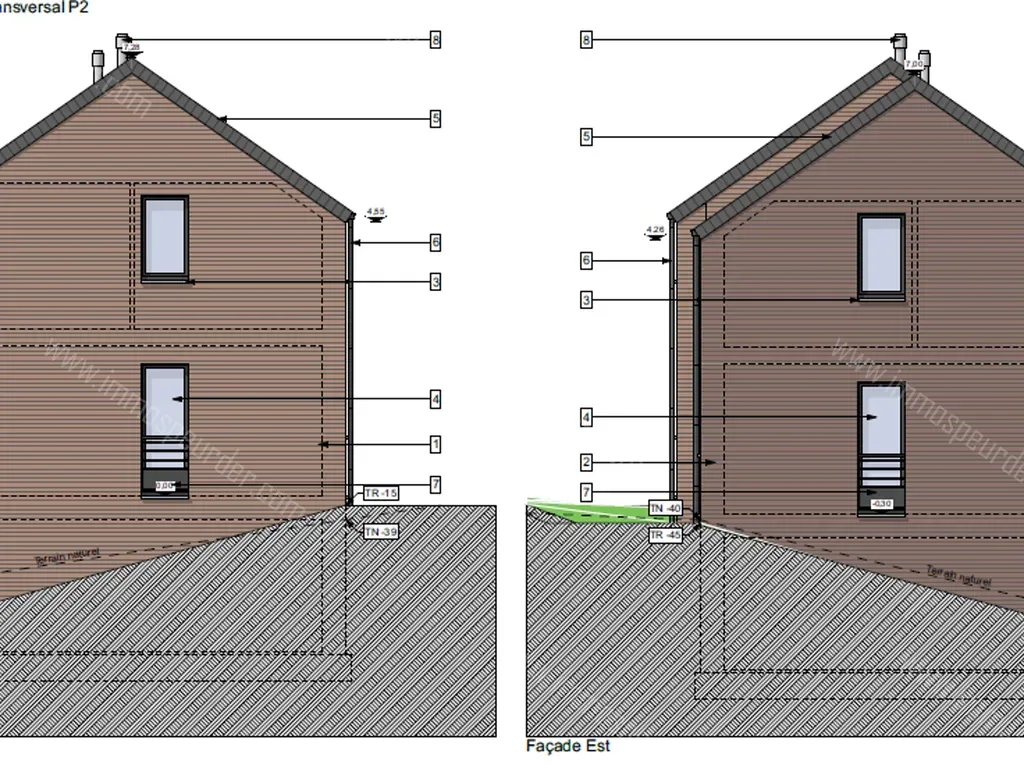Projet (1) : Construction de 2 maisons jumelées/mitoyennes en contre bas du terrain, afin d'éviter le vis-à-vis avec l'immeuble.