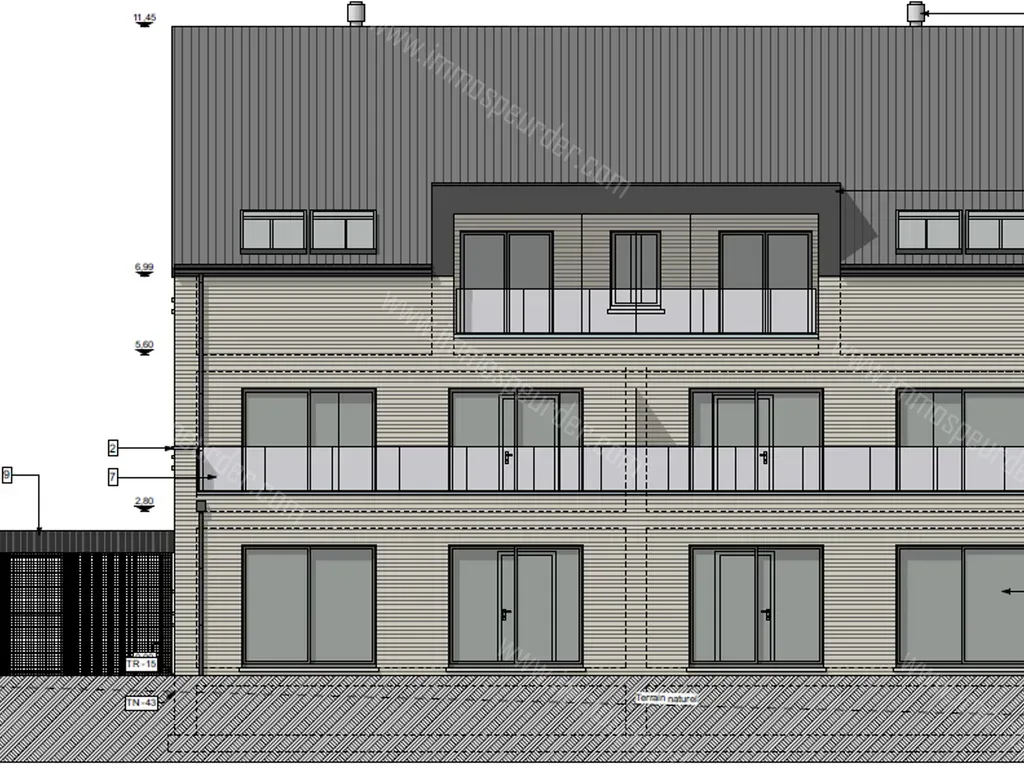 Projet (2) : Construction d'un immeuble de 6 appartements de +/- 90m² arboré d'un parc commun ainsi que d'un potager communautaire.