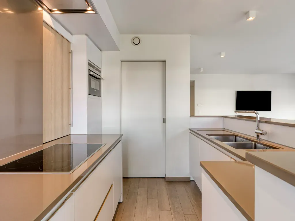 Kasteelstraat 153 bus A/02.01 - 8800 Roeselare - Bij het betreden van het appartement kom je in een verzorgde inkomhal met apart hangtoilet en wastafel. De lichtrijke leefruimte van ca. 40 m² vormt het hart van de woning en sluit naadloos aan op de volledig uitgeruste keuken (11,3 m²) met dubbele spoeltafel, vaatwasser, inductiekookplaat, combi-oven en koelkast. Aansluitend bevindt zich een praktische was- en berging (3,3 m²). Vanuit de leefruimte heb je directe toegang tot het royale terras met elektriciteitsvoorziening, ideaal om te genieten van het buitenleven. Verder beschikt het appartement over een bureau (5 m²), perfect als thuiswerkplek of hobbyruimte. De masterbedroom (13 m²) is voorzien van ingebouwde kasten, geeft toegang tot een gezellig tweede terras en beschikt over een ruime badkamer met ligbad, dubbele wastafel en hangtoilet (7,2 m²). De tweede slaapkamer (11,2 m²) heeft eveneens inbouwkasten en een aanpalende badkamer met inloopdouche en enkele wastafel. Het appartement biedt extra comfort dankzij centrale verwarming met vloerverwarming, conforme elektriciteit en twee terrassen. Bovendien is er de mogelijkheid om een ondergrondse garage (25,7 m²) en een staanplaats bij te kopen. In het complex is een ruime gemeenschappelijke fietsenberging voorzien die kosteloos ter beschikking staat van de bewoners, en er is uiteraard ook een lift aanwezig. De algemene voorwaarden van Dewaele DIY kunt u steeds raadplegen via dewaele.com.