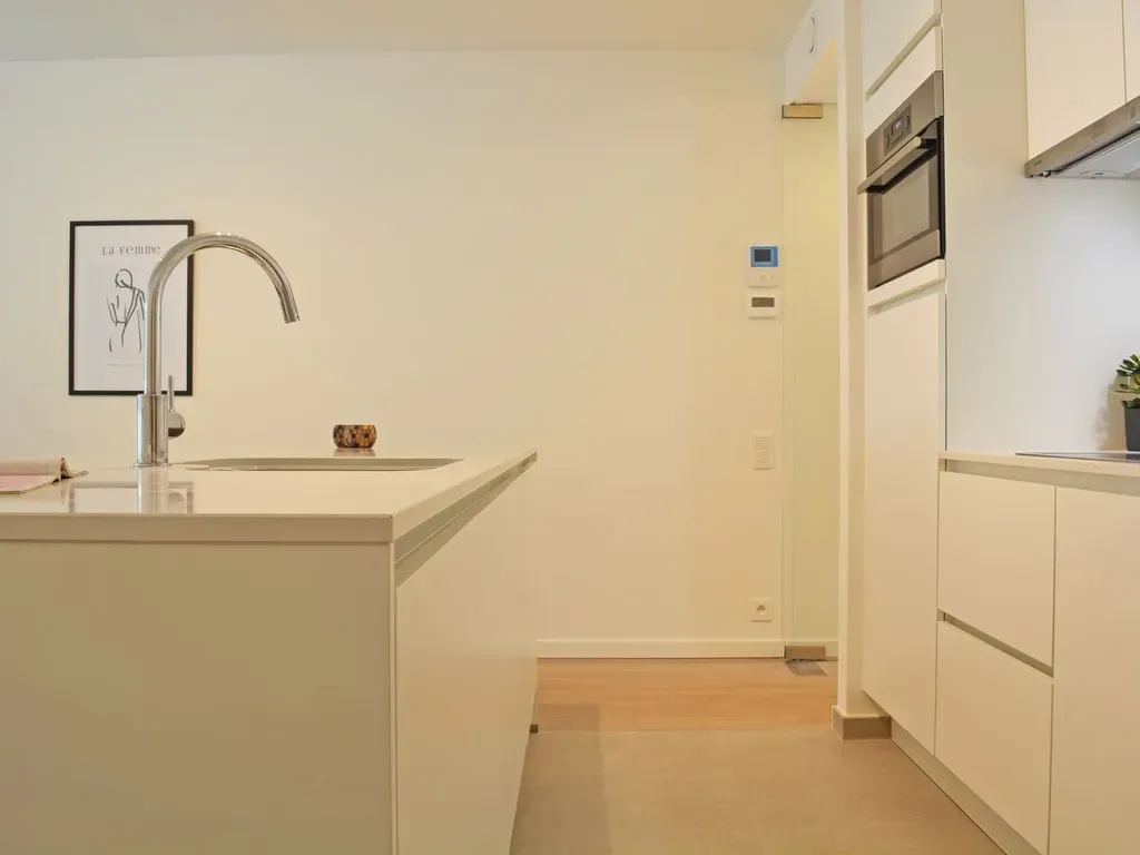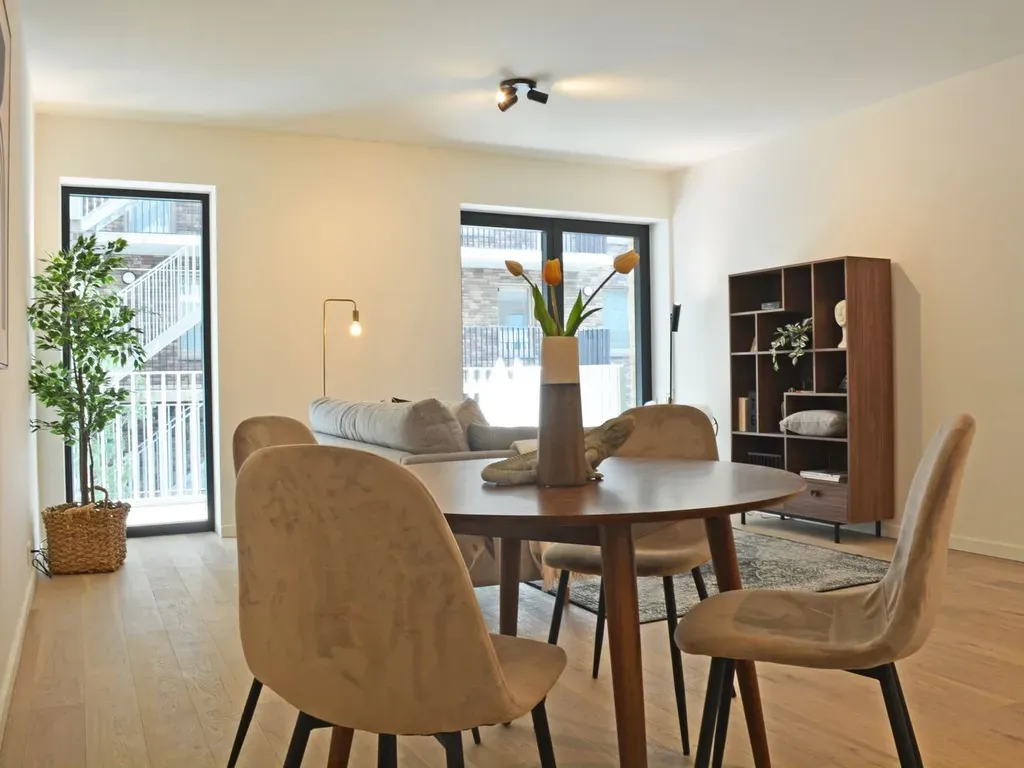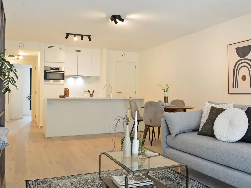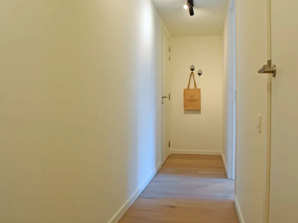 Het appartement heeft volgende indeling: inkom met gastentoilet, lichtrijke leefruimte met open keuken ingericht met duurzame materialen en kwalitatieve toestellen, 2 slaapkamers, badkamer, bergruimte en terras van 11m². Tevens is er ook gelegenheid om ondergronds te parkeren.