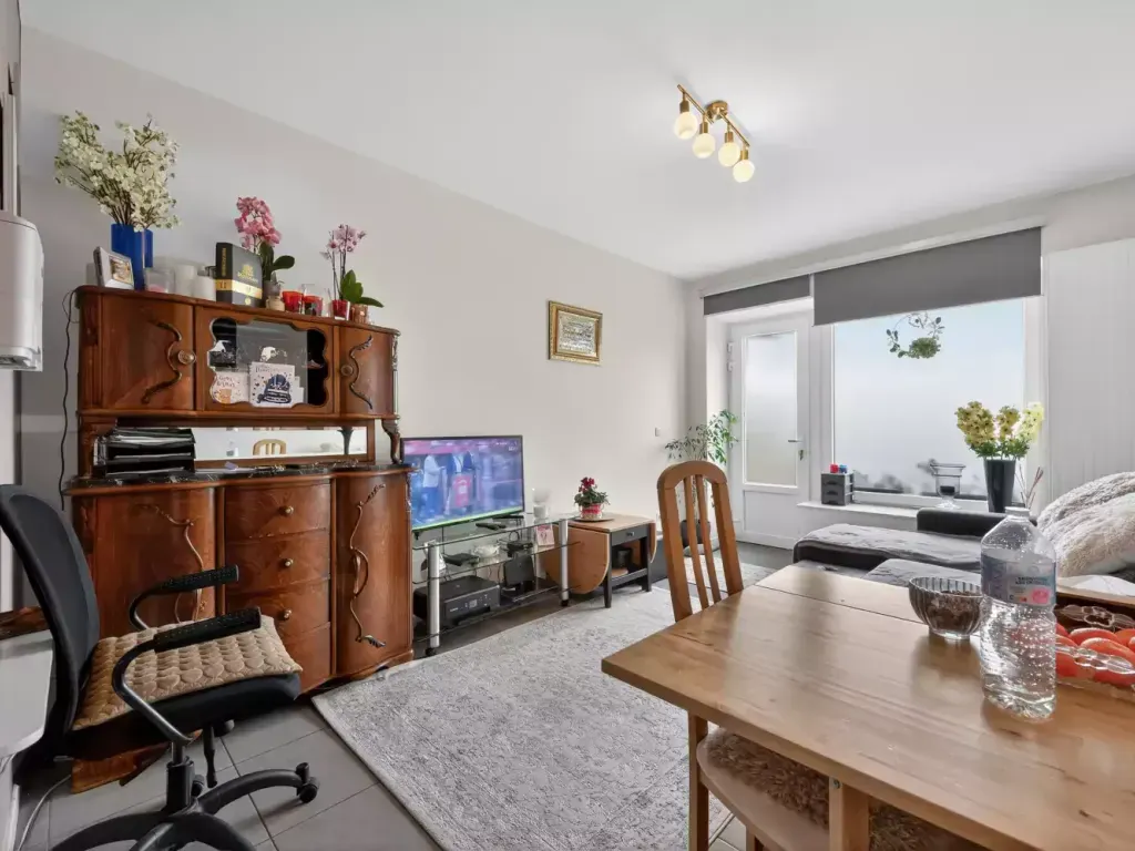 Generaal Meiserplein 8B - 1030 Schaarbeek - Dit instapklare appartement aan het iconische Meiserplein in Schaarbeek bevindt zich op de benedenverdieping van een karaktervol gebouw. De gezellige woonkamer vormt het hart van het appartement en sluit naadloos aan op de moderne, uitgeruste keuken. Dankzij de aanwezigheid van twee slaapkamers leent dit appartement zich uitstekend tot zowel een klein gezin als een koppel dat op zoek is naar extra ruimte voor een logeerkamer of een rustig thuiskantoor. De badkamer is voorzien van een inloopdouche en een moderne wastafel met hangend meubel. Een absolute zeldzaamheid voor deze locatie is het ruime, privatieve terras aan de achterzijde, een rustige buitenplek waar u in alle privacy kunt genieten van de buitenlucht.