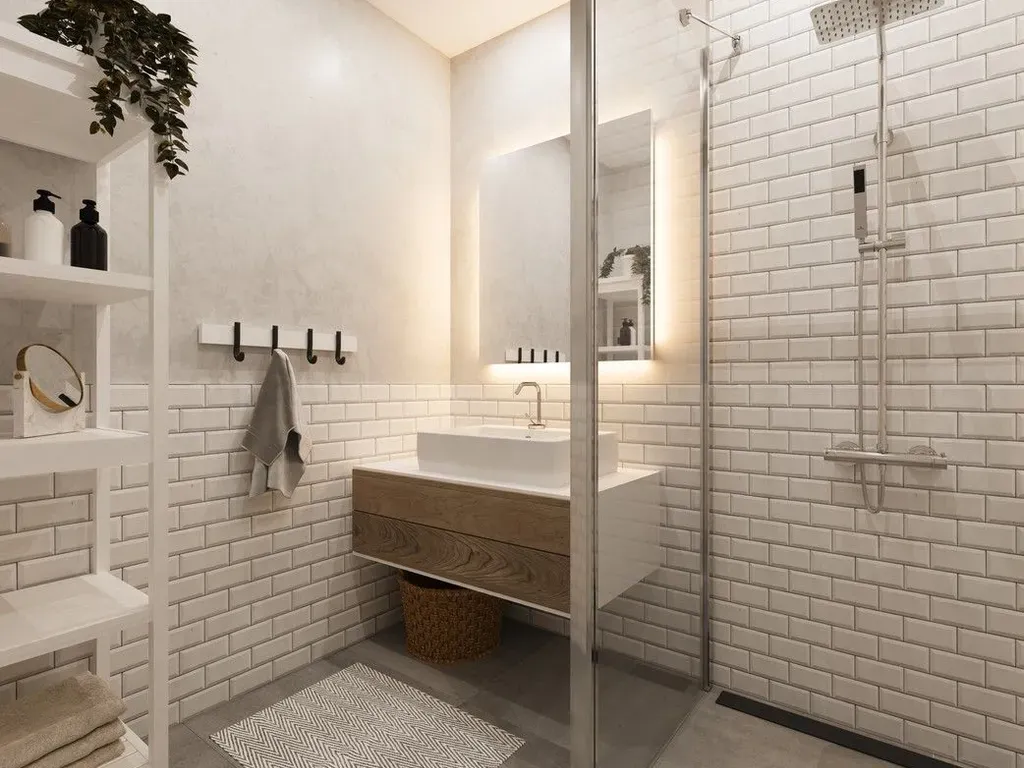 Indeling als volgt: inkomhal met vestiaire en gastentoilet, ruime leefruimte met een moderne en open geïnstalleerde keuken en berging, 2 slaapkamers en badkamer met inloopdouche , ligbad en dubbele wastafel met meubel.