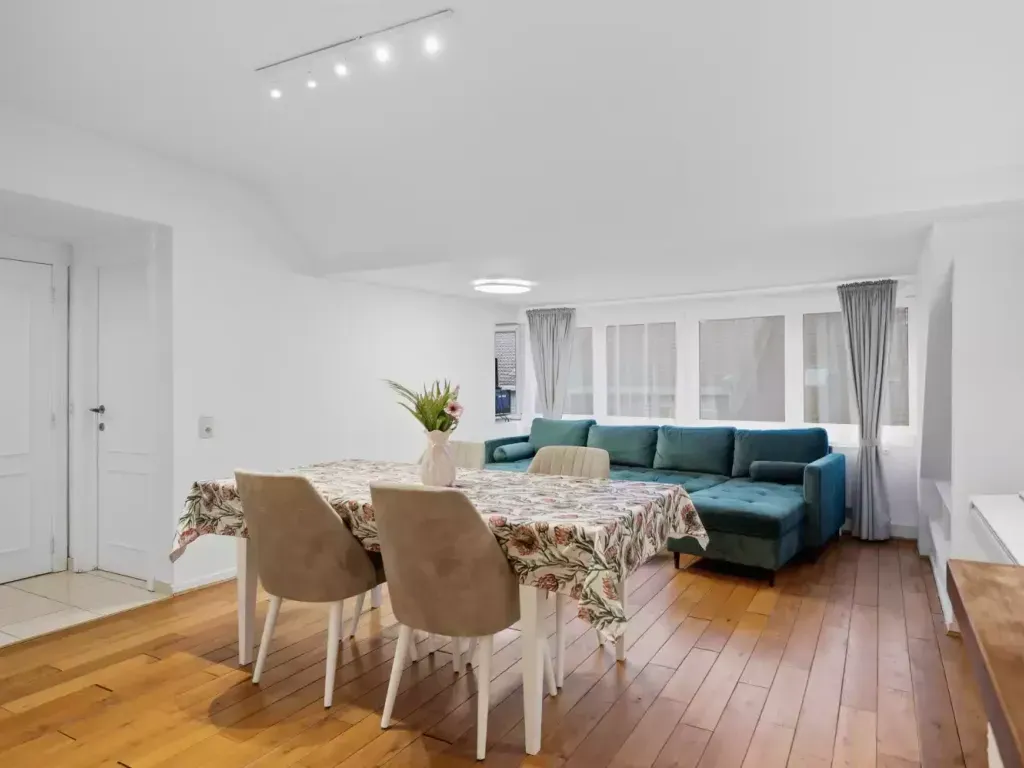 Hertogstraat 65 - 1150 Sint-Pieters-Woluwe - Dit gezellige penthouse-appartement is gelegen op de bovenste verdieping (derde etage) en biedt een unieke combinatie van rust en een uitstekende bereikbaarheid nabij het centrum van Sint-Pieters-Woluwe. Met een vloeroppervlakte van 89m² (waarde volgens EPC) beschikt het appartement over een uiterst praktische en aangename indeling. Bij binnenkomst via de inkomhal heeft u toegang tot alle andere ruimtes. De ruime woonkamer van circa 30m² met salon en eetplaats vormt het hart van het appartement. De aangrenzende keuken is volledig uitgerust met een kookplaat, dampkap, oven, afwasmachine en koelkast, klaar voor direct gebruik. Verder zijn er 2 slaapkamers en een badkamer die is ingericht met een ligbad (met douchekop) en een wastafel. Voor extra opslagruimte beschikt het appartement nog over een private kelder. Bovendien werd de elektrische installatie volledig conform gekeurd.