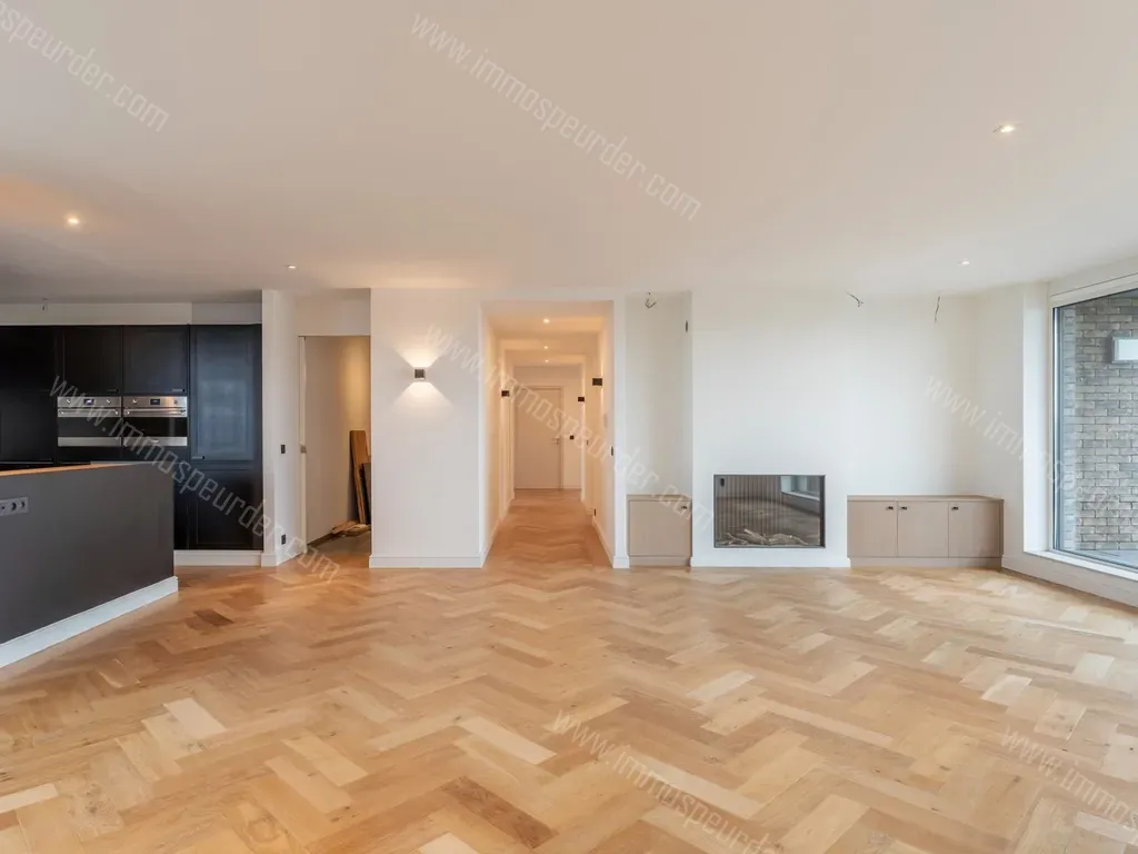 Via de inkomhal met een gastentoilet bereik je de woonkamer. De comfortabele leefruimte, met gashaard en open keuken, vormt het hart van het appartement. De grote ramen zorgen enerzijds voor veel zonlicht, maar bieden ook toegang tot de twee ruime terrassen. De strakke witte muren en plafonds zorgen voor een mooi contrast met de houten vloer terwijl de zwarte geïntegreerde open keuken een modern accent toevoegt. Deze keuken heeft voor elk wat wils: een inductievuur, heteluchtoven, combimagnetron, ingebouwde vaatwasser en koelkast van het merk SMEG zijn allemaal aanwezig. Kortom, alles wat je nodig hebt om een snel ontbijt of een uitgebreide maaltijd te bereiden, is aanwezig. Het werkblad in een u is niet als de vele opbergruimte, er handig.