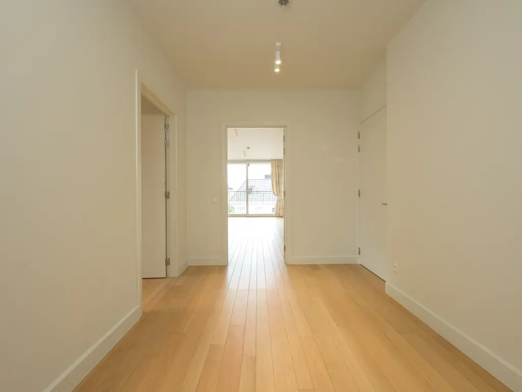 We betreden dit appartement via een inkomhal op parket en een toilet voor de gasten.