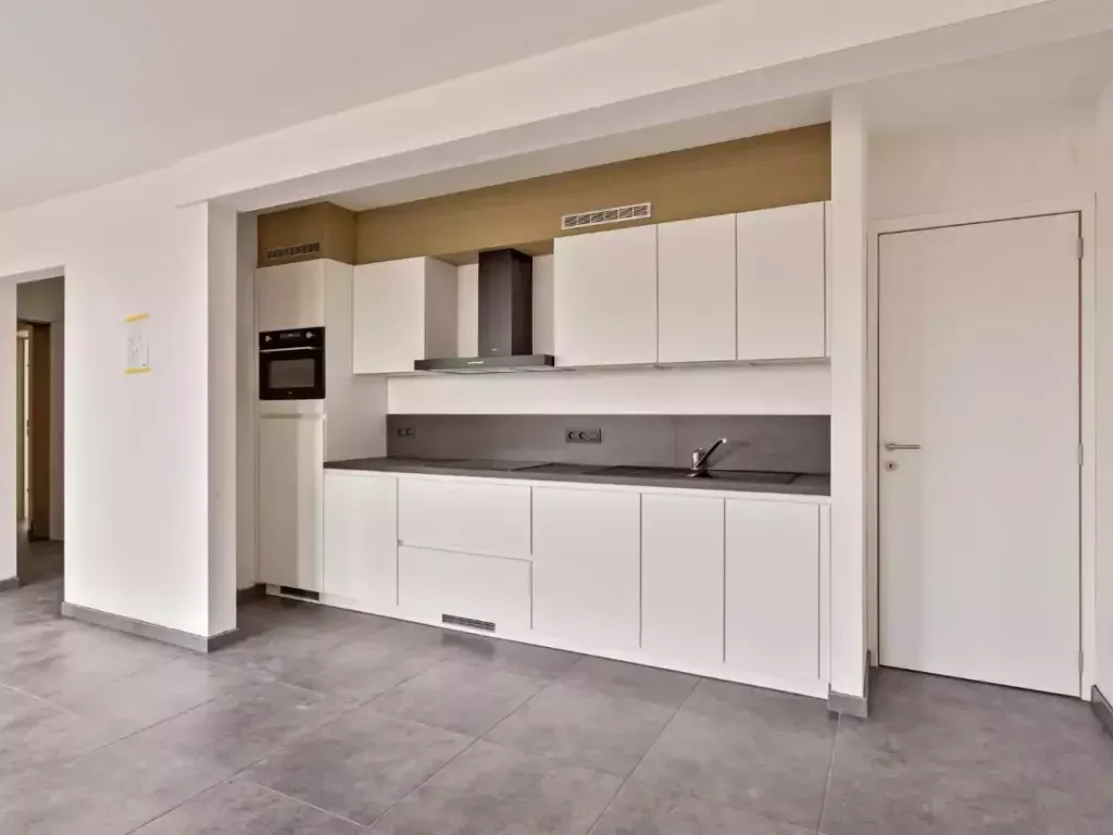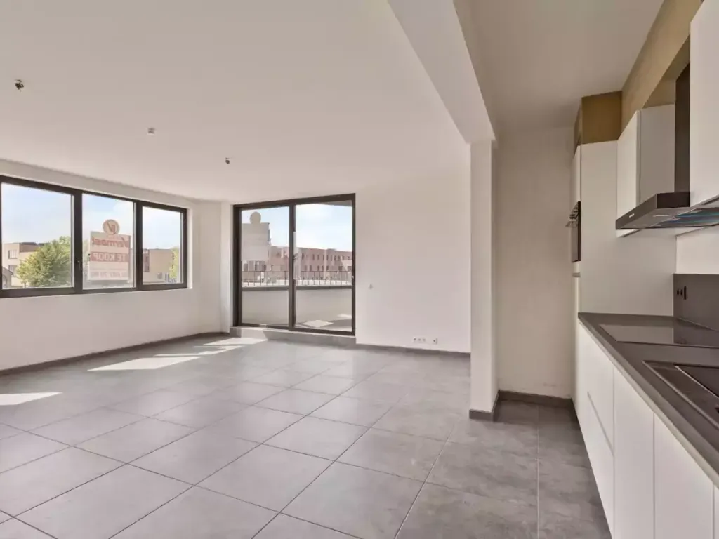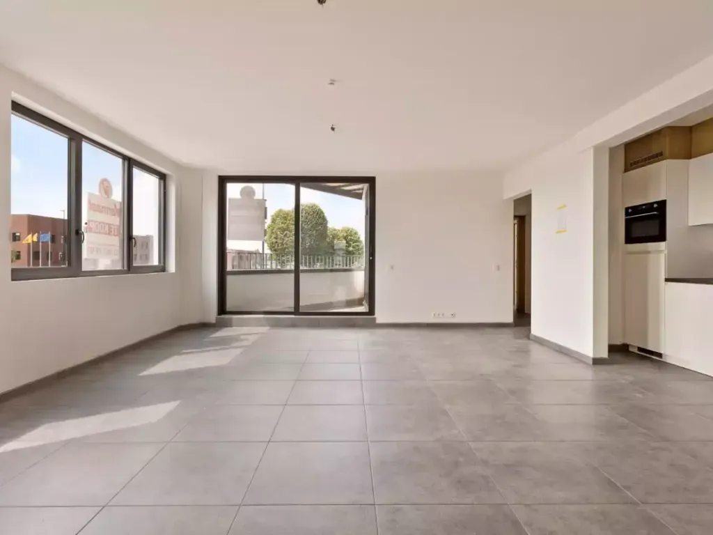 Dit ruim nieuwbouwappartement van 97m² is gelegen op de eerste verdieping en bevindt zich vlakbij het centrum van Zaventem. U komt binnen in een lichtrijke woonkamer met een modern en volledig uitgeruste open keuken. Via de woonkamer heeft u toegang tot het terras waar u van het zonnetje kan genieten. De keuken beschikt over een kookplaat, dampkap, frigo, vaatwasser en oven. Verder zijn er ook twee slaapkamers, een berging, een apart toilet en een badkamer. De badkamer beschikt over een ruime inloopdouche en een dubbele wastafel met onderhangend meubel.