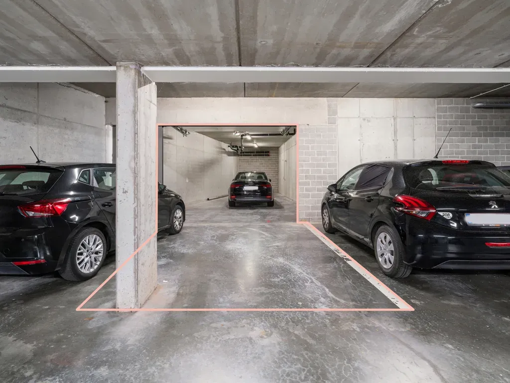 De staanplaats bevindt zich in een volledig afgesloten ondergrondse garage in de residentie 'De Vijvers' De berging is rechtstreeks toegankelijk via een elektrische rolpoort en bevindt zich meteen achter de parkeerplaats, wat uiterst praktisch is voor laden en lossen.