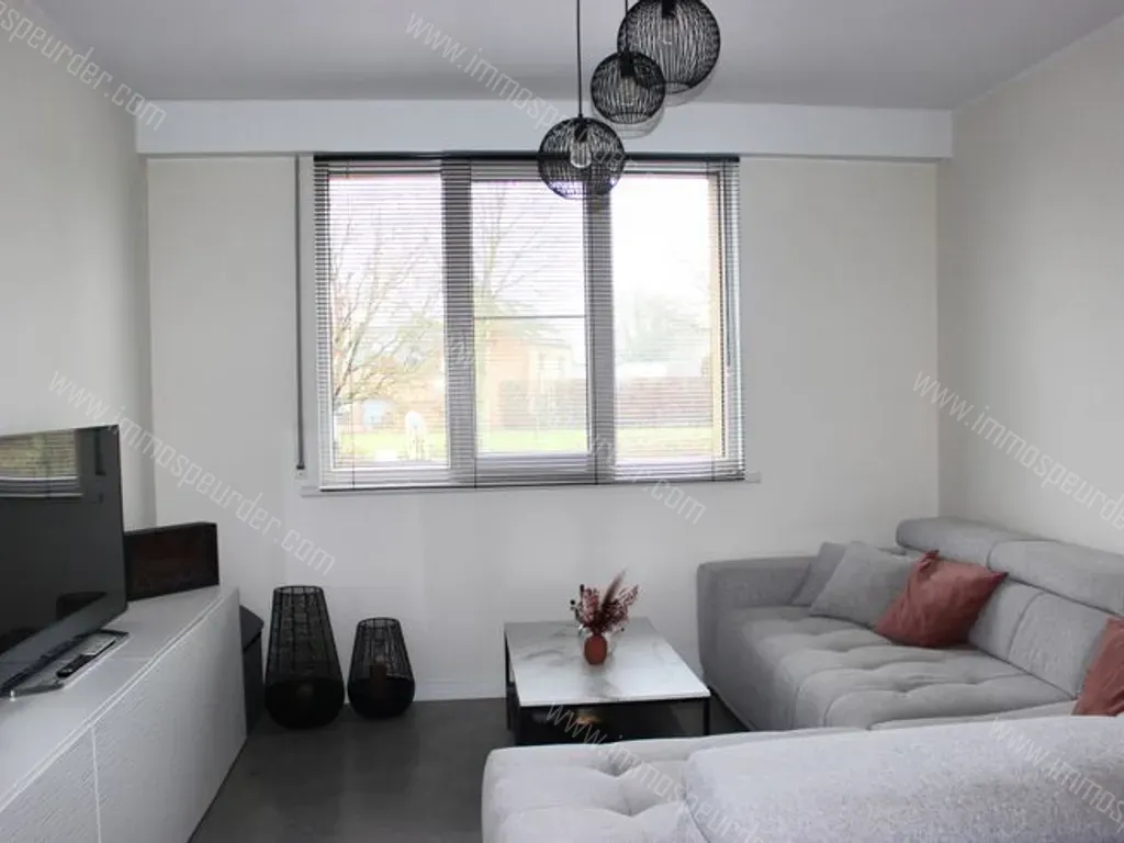 De leefruimte is ruim en open ingericht met een gezellige zithoek en een moderne open keuken. De keuken is volledig uitgerust met ingebouwde toestellen zoals een microgolfoven, combi-oven, koelkast, vaatwasmachine en biedt veel opbergruimte. Aansluitend bevindt zich een berging met schuifdeur.