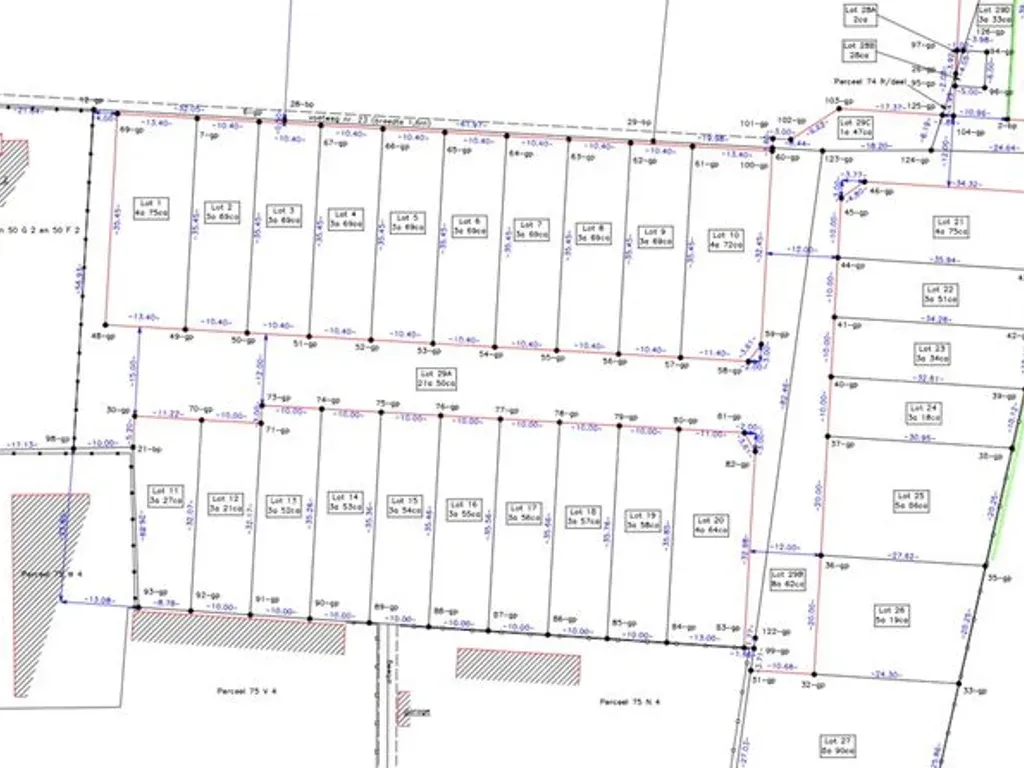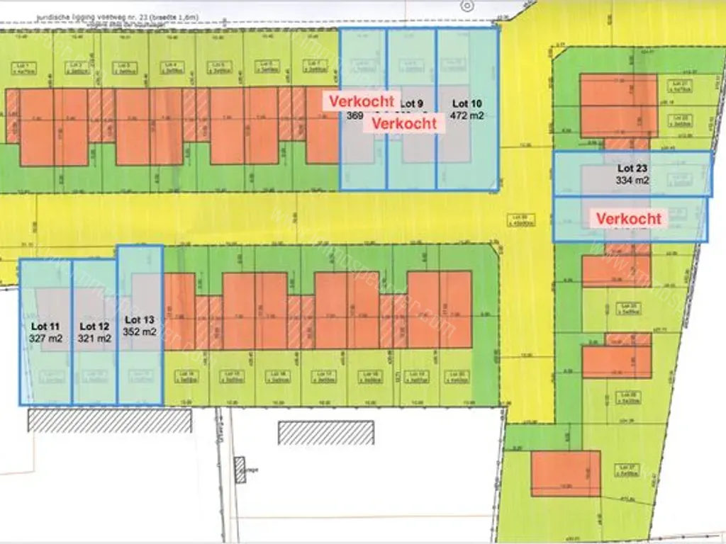 Alle bouwgronden aangeduid op het plan zijn beschikbaar, lot 8,9 & 24 zijn reeds verkocht. Het perceel vermeld in de advertentie is lot 12. Neem gerust contact op voor informatie over de andere percelen.