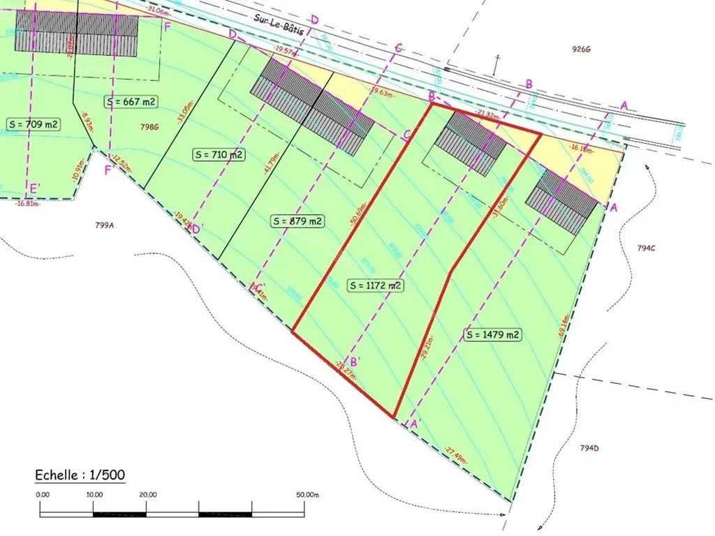 Profondeur parcelle : +- 50,69 à 60,81 mètres
