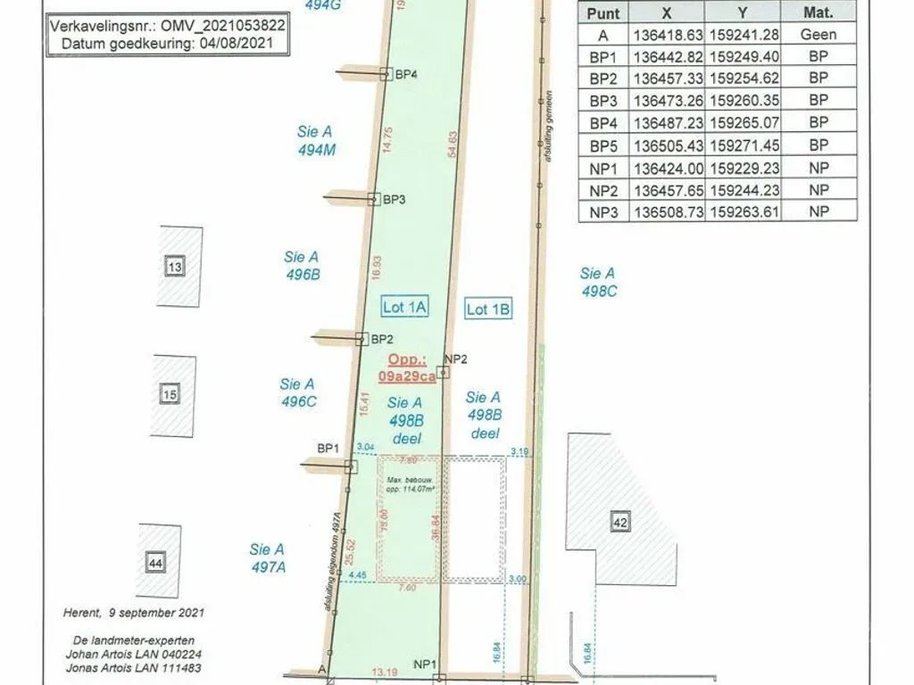 Johan Demaegtstraat 1a - 1670 Pepingen - Immo Pické biedt U dit mooi perceel bouwgrond aan van 9a 29ca voor een halfopen bebouwing. Breedte aan de straatzijde: 13m19cm en voorgevelbreedte: 7m60cm. Diepte gelijkvloers: 15m en diepte eerste verdiep: 12m. Hoogte bij plat dak 6,50m en bij hellend dak 6,00m. Voor bijkomende informatie, aarzel niet het kantoor te contacteren.