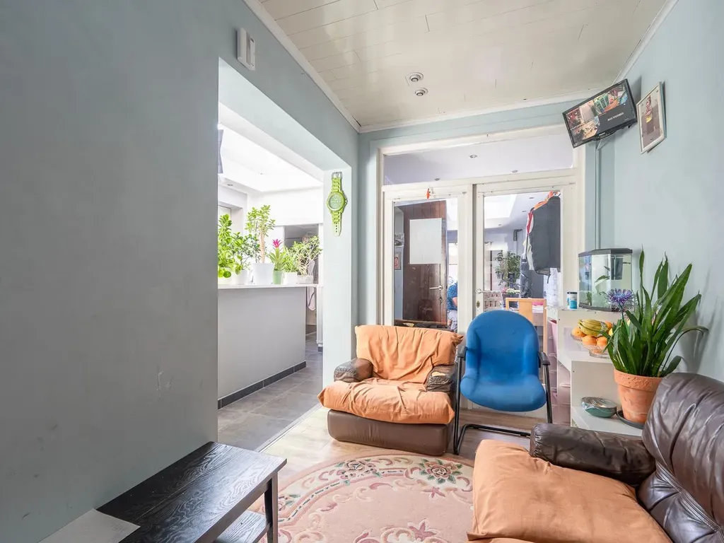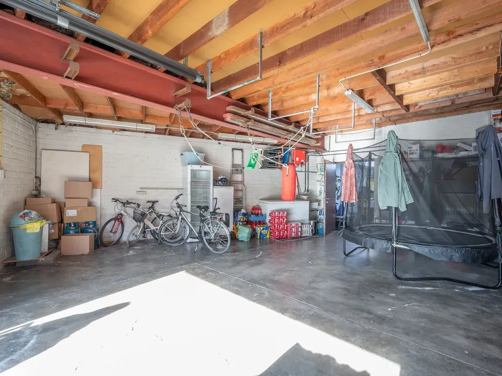 Julius Delaplacestraat 38 - 8310 Sint-Kruis - Deze woning met diverse mogelijkheden bestaat op het gelijkvloers uit een commerciële ruimte met aanpalend een eet- en leefruimte, uitgeruste keuken, badkamer en een berging. Er is een ruim atelier met mezzanine (65m²) die ook toegankelijk is via de achterliggende straat.