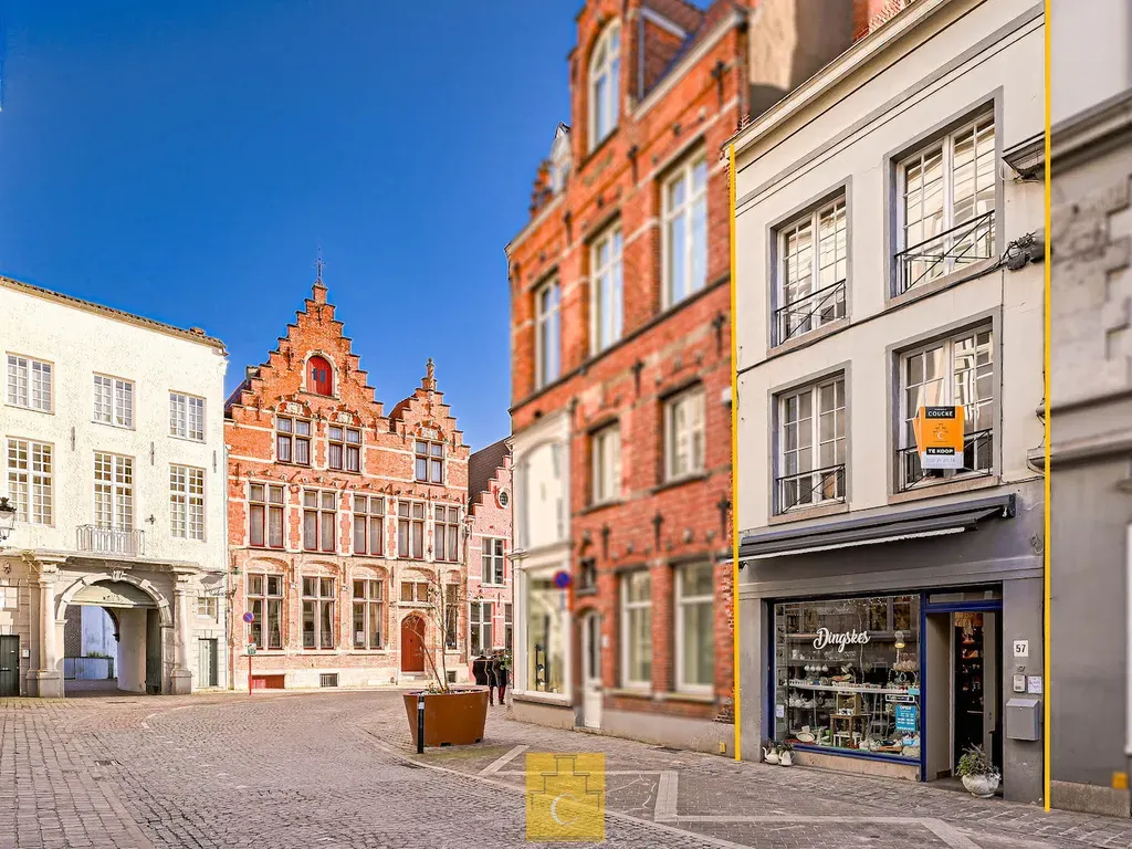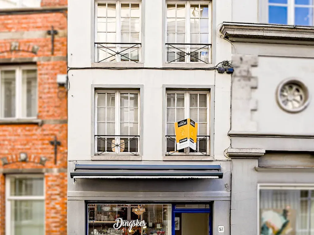 Sint-Jakobsstraat 57 - 8000 Brugge - In de levendige Sint-Jakobsstraat, een straat die bekendstaat om haar creatieve ondernemers en unieke handelszaken, bevindt zich dit bijzonder aangenaam klein handelspand met bovenliggende woonst en aparte ingang. Een locatie die niet alleen strategisch is, maar ook bruist van karakter en authenticiteit. Het verzorgde pand wordt gekenmerkt door een aantrekkelijke 19e-eeuwse lijstgevel met hoge, elegante ramen die zorgen voor een uitstraling en veel natuurlijk licht. Op het gelijkvloers bevindt zich een leuke winkelruimte, momenteel verhuurd aan een gekende brocantezaak. Deze ruimte beschikt tevens over een afzonderlijk toilet. Via een aparte inkom bereikt men het woongedeelte op de verdiepingen. Op de eerste verdieping bevindt zich een gezellige leefruimte met originele schouw, een ingerichte keuken voorzien van toestellen, en een badkamer met douche, toilet en lavabomeubel. De tweede verdieping omvat een nachthal en twee aangename slaapkamers. De achterste slaapkamer geeft uit op een plat dak, afgezet met een muurtje, vanwaar men een mooi zicht heeft op de Sint-Jakobskerk – een zeldzaam en charmant extraatje in het historische stadscentrum. Het pand is uitgerust met centrale verwarming op gas (condensatieketel) en vormt een uitstekende combinatie van wonen en werken op één locatie. Dankzij de aantrekkelijke ligging en de aparte toegangen van winkel en appartement is dit pand niet alleen ideaal voor eigen gebruik, maar ook een interessante en duurzame investering. Een unieke opportuniteit voor wie wil wonen, ondernemen of investeren in een inspirerende Brugse buurt waar authenticiteit en creativiteit elkaar ontmoeten. EPC winkel : B-label. EPC appartement : E-label (414 kWh/m2jaar). Niet gelegen in een risicozone voor overstromingen. P-score : C.