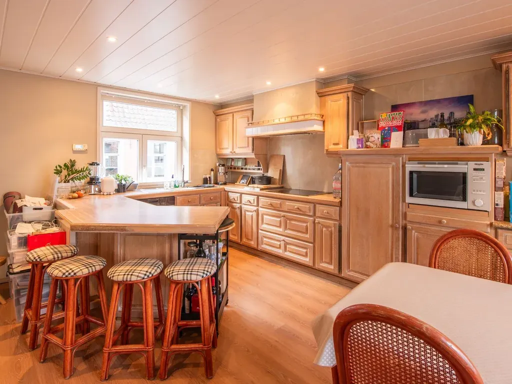 Een aparte ingang via de Wulfhagestraat geeft toegang tot het appartement alsook een afzonderlijke uitweg aan het gelijkvloers. Het commerciële gedeelte heeft indeling als volgt: instapklare kantoor/winkelruimte, kitchenette, afzonderlijk toilet en afzonderlijke inkomhal naar de verdieping. Op de 1e v.: traphal, open ruimte met mogelijkheid tot wonen, kantoor of stockageruimte, badkamer met lavabo, toilet en douche. Op de 2e v.: open ruimte die dienst kan doen als slaapkamer/kantoorruimte/stockage. Het appartement (via Wulfhagestraat) bestaat uit: aparte inkomhal. Op de 1e v.: traphal, woonkamer met zit- en eethoek, open keuken uitgevend op het ruim stadsterras. Op de 2e v.: slaapkamer en badkamer voorzien van dubbele lavabo met meubel, toilet en douche. Dit pand biedt verschillende mogelijkheden om wonen en werk te combineren of ideaal als investeringspand. Voor meer informatie of een vrijblijvend bezoek contacteer Sebastien op het nummer 0477 09 09 09.