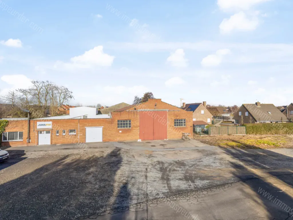 Enerzijds bevinden zich twee magazijnen : een lager gebouw van 600m² (dienstig als bureel, showroom en opslag) en een industriegebouw van 1100m² (dienstig als werk-/opslagplaats) en met een voorliggende parking van +/- 3000m²