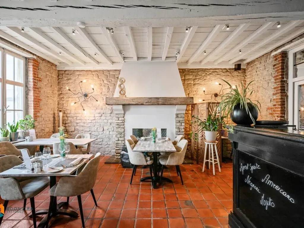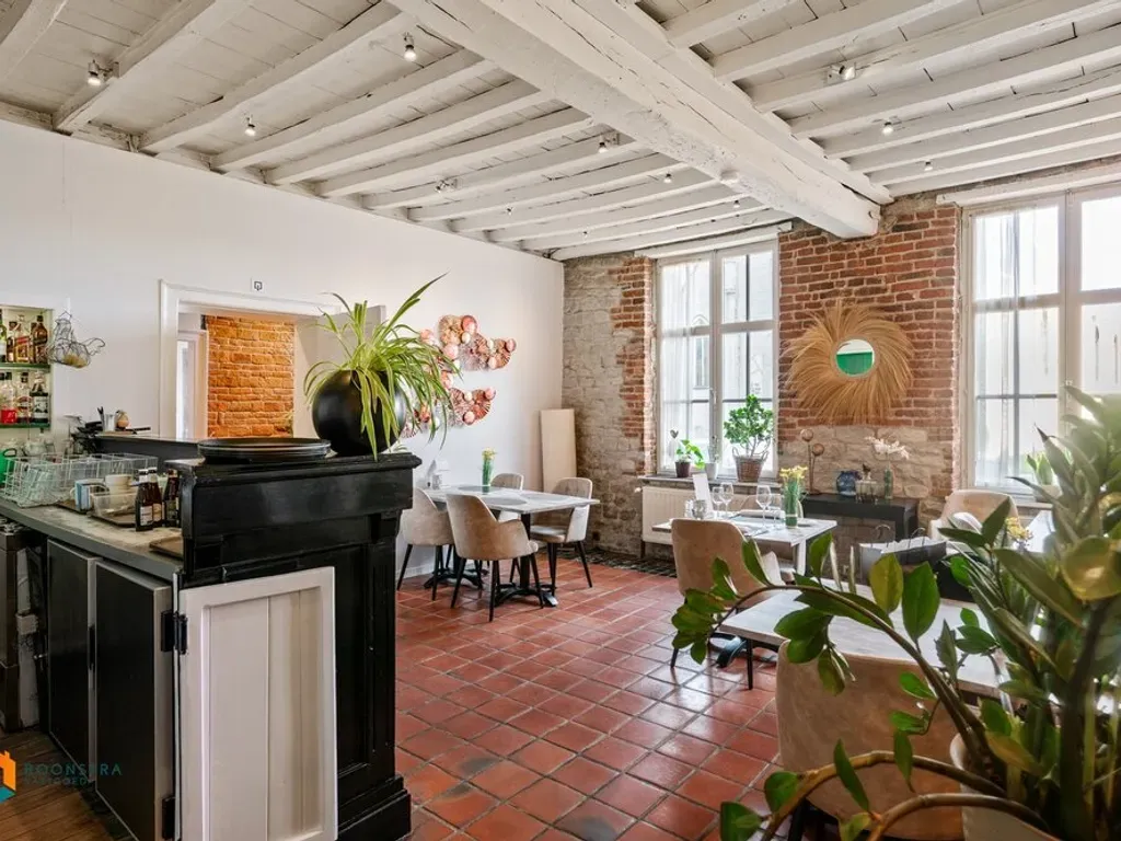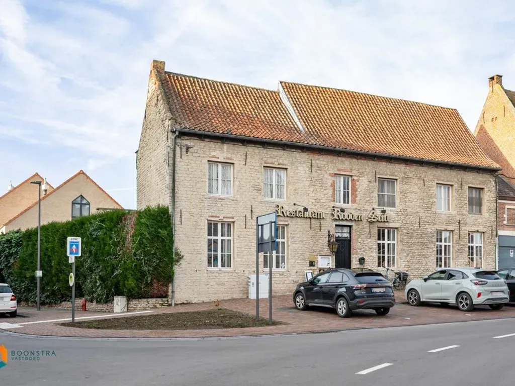 Het handelsgelijkvloers wordt momenteel uitgebaat als restaurant. U beschikt vooraan over een aparte inkomhal, drie aparte verbuiksruimtes waarvan één met toog en voldoende toiletten. Achteraan bevindt zich een ruim, zuidwest georiënteerd terras van 100 m² waarop gasten plaatsen kunnen nemen bij goed weer. Verder is het pand ook voorzien van een zeer ruime, volledig ingerichte keuken, een bijkeuken en extra bergruimte. Via de nachthal bereiken we de eerste verdieping waar zich nog een extra verbruiksruimte en het bovengelegen appartement bevinden. Het appartement beschikt over een aparte keuken en een ruime leefruimte die u kunt inrichten met een gezellige zithoek en een aparte eetplaats. Verder geeft de hal ons nog toegang tot de badkamer uitgerust met lavabo, douchebad en toilet en twee slaapkamers. Tot slot beschikt u nog over een ruime zolder en voldoende parkeermogelijkheden voor het handelspand en op het Dorpsplein. Deze eigendom is momenteel verhuurd voor lange termijn (tot 2036) en biedt een interessant huurrendement.