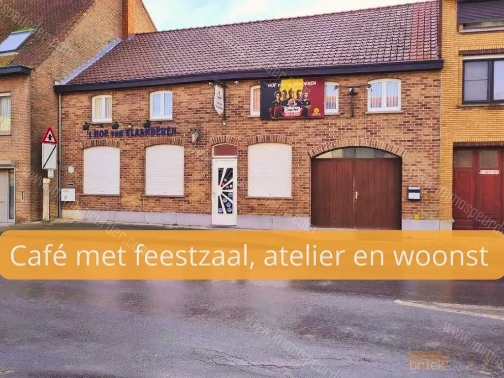 Heel ruim café met grote uitnodigende bar, voorzien van koeling en tap. Vanuit het café kom je in de bijhorende feestzaal, waar bv frituur of pizzeria perfect zou kunnen passen, ook voor een dartsclub kan deze ruimte ideaal zijn. De bestaande koer kan gemakkelijk omgetoverd worden tot een gezellig zonneterras, uit de wind en in de zon.