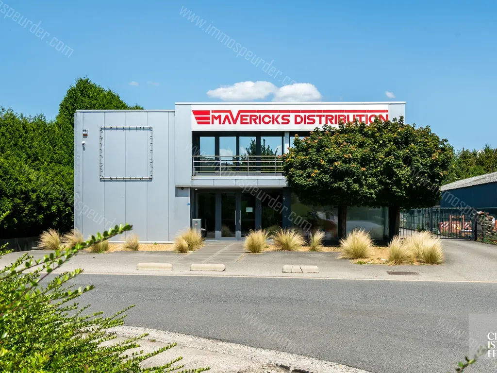 Het hoofdgebouw biedt op het gelijkvloers (225m2) een luxueuze showroom met een directiekantoor en 3 burelen voorzien van inbouwkasten, een geïnstalleerde keuken, een toilet en een aparte inkom met trap naar de loft. Vanuit de kantoren heeft men directe toegang tot de werkplaats van 187m2, gevolgd door het magazijn van 375m2. Het terrein is volledig omheind en voorzien van automatische poort. Voor de showroom zijn enkele parkeerplaatsen voorzien van het clienteel.