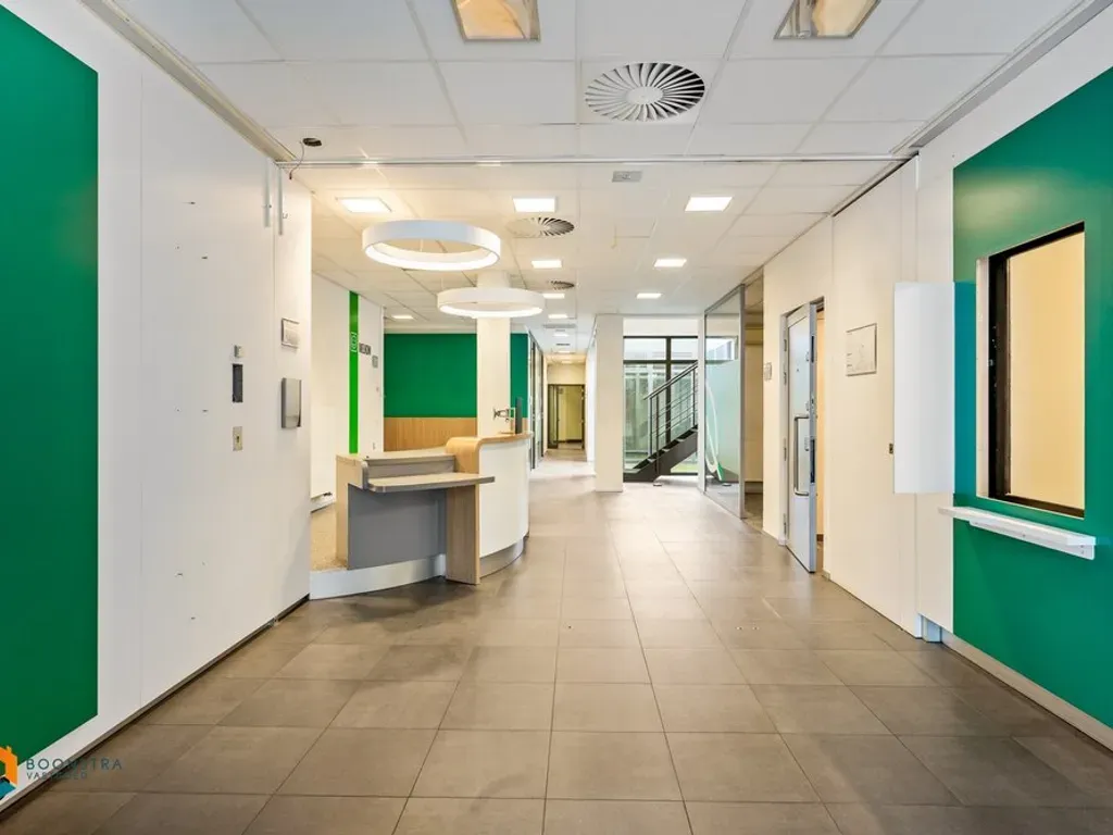 U betreedt het pand via een ruime inkomhal, perfect geschikt om in te richten als vestiaire en/of wachtzaal. Het gelijkvloers beschikt over diverse bureauruimtes, een keuken met eetruimte, sanitair en een praktische berging met plaats voor een printer.