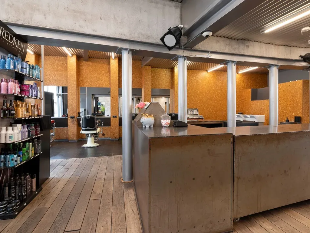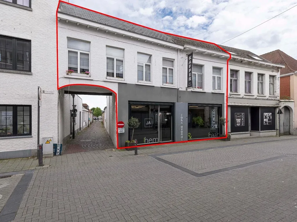 Dit pand doet momenteel dienst als een kapsalon maar biedt ook tal van andere mogelijkheden. De commerciële ruimte heeft een totale oppervlakte van ca 180 m² en beschikt over een alarmsysteem. Vooraan een ruime open ruimte en achteraan apart kantoor, kitchenette met achteringang, toiletten en bergruimte. Tevens binnenkoer met buitenberging. Inkom voor klanten is vooraan gelegen, personeelsingang of ingang naar het appartement toe is te bereiken via een zijdeur.