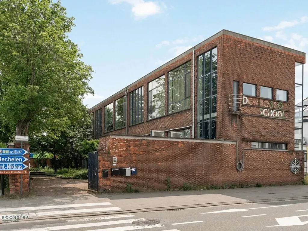 Dendermondsesteenweg 129 A - 2830 Willebroek - Dit charmante en karaktervolle duplex-kantoor, gelegen in het voormalige ‘Don Bosco’-schoolgebouw in Willebroek, ademt sfeer en geschiedenis. Het gebouw werd in 2013 volledig gerenoveerd, waarbij tal van authentieke elementen zorgvuldig bewaard zijn gebleven. Het pand beschikt over een vergunning voor omvorming naar appartement, wat het een veelzijdige investering maakt. De vroegere speelplaats werd smaakvol heraangelegd tot een groene, gemeenschappelijke tuin met een rustgevende vijver – een oase van kalmte midden in het hart van het gebouw.