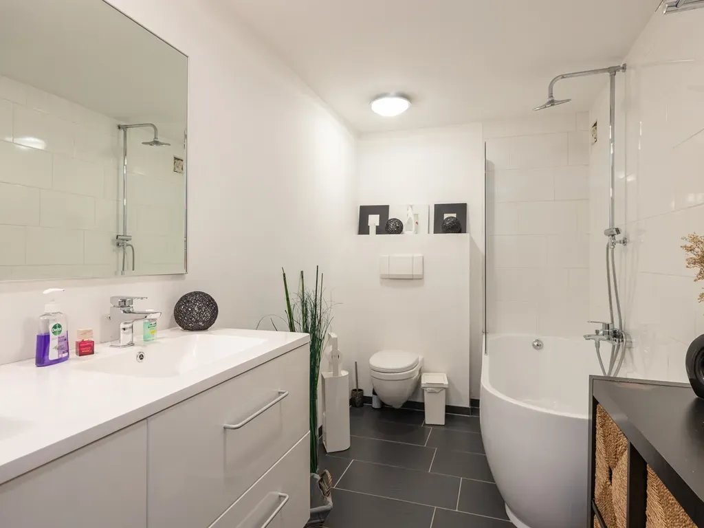 Badkamer: +/- 7m² ligbad, lavabo en toilet