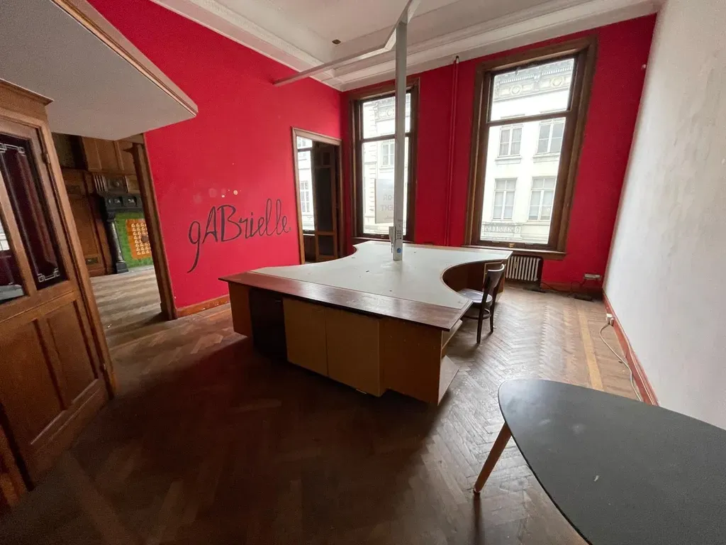 Momenteel vergund als kantoorgebouw met atelier op het gelijkvloers en conciërgewoonst op de tweede verdieping. Het gebouw is volledig te renoveren.