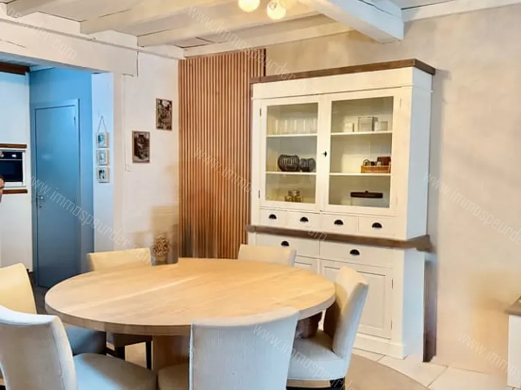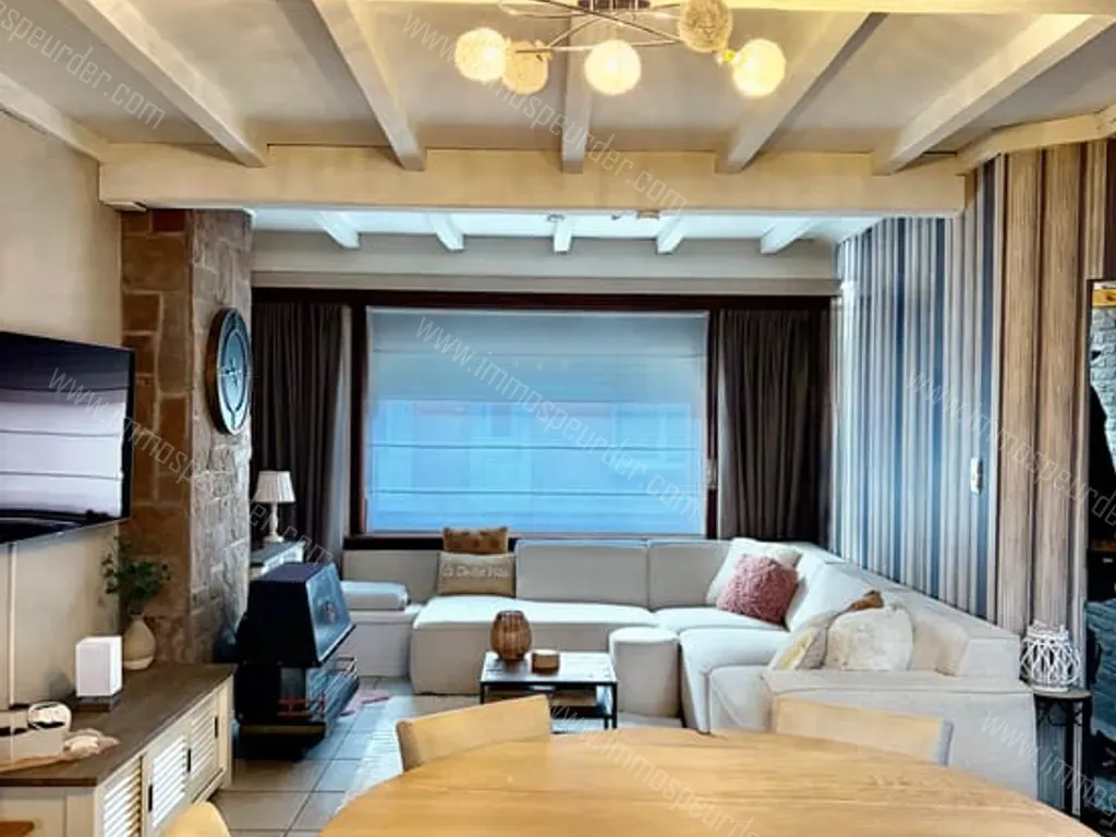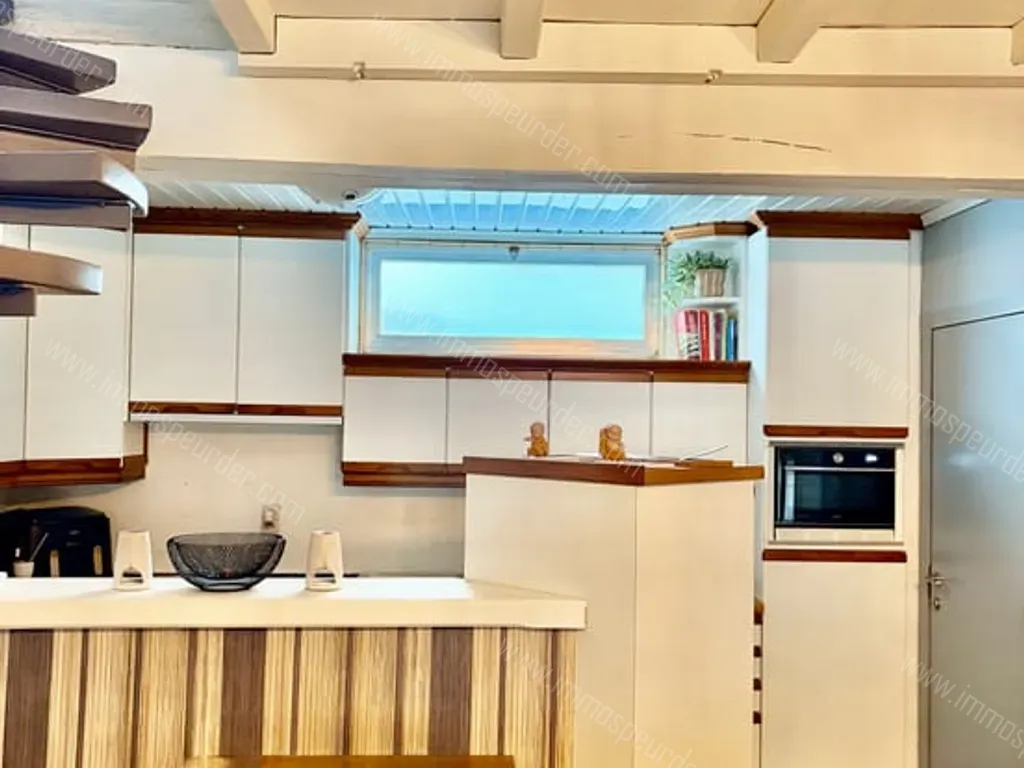 We komen binnen in de hal die leidt naar de open leefruimte van +- 40 m2 met airco. Er is een open keuken aanwezig die aan vervanging toe is. Naast de keuken is een aparte wc aanwezig.
