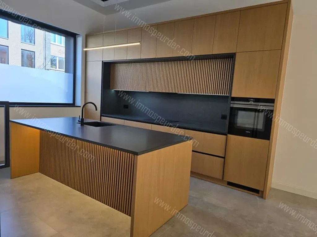- de living, eethoek en open keuken (80 m²) bevinden zich achter dubbele smeedijzeren schuifdeuren, de aanwezigheid van op maat gemaakte kasten verhoogt de luxe uitstraling van deze ruimte, de open keuken is voorzien van kwalitatieve Siemenstoestellen, door het grote schuifraam komt men in de verzorgde, groene tuin terecht waar een zuidgericht terras en een omvangrijk tuinhuis aanwezig zijn. Op de gelijkvloers is vloerverwarming aanwezig.