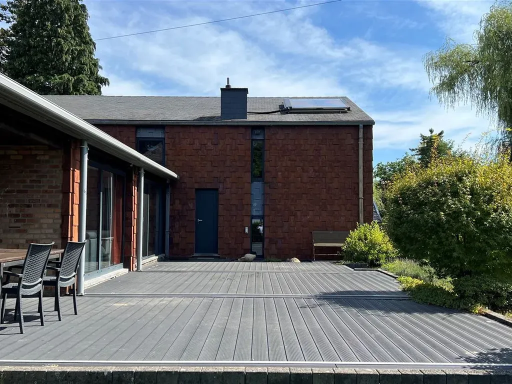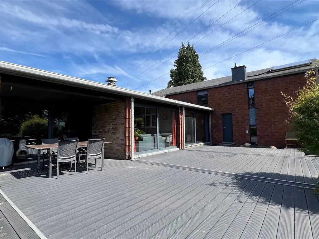 Rue du Grand Air 43 - 4052 Beaufays - Option !La Bourse Immobilière vous propose cette charmante villa de plain-pied de 225m², idéalement située à Beaufays. Vous apprécierez le calme de son environnement, au fond d’une rue en cul-de-sac, ainsi que son superbe jardin et sa vaste terrasse plein sud. Accessibilité aisée aux commodités du centre de Beaufays (commerces, écoles, grandes surfaces, restaurants et infrastructures sportives) et arrêt de bus à 3 min à pied.Composition : vaste hall d’entrée avec vestiaire et w.c. visiteurs, lumineux séjour en L de 59 m² avec espace salon TV et accès direct au jardin, grande cuisine entièrement équipée avec buanderie attenante, hall de nuit menant une salle de douche indépendante et à 4 belles chambres à coucher (9, 14, 17 et 19 m²), dont une suite parentale avec dressing et salle de bains privative. Le sous-sol offre des caves aménagées comprenant une salle de sport et un garage.À l’extérieur, la terrasse plein sud de 80 m² prolonge agréablement l’espace de vie et s’ouvre sur une parcelle arborée de 2.655 m².Sur le plan énergétique, la villa bénéficie d’un excellent PEB C grâce à l’isolation des murs et de la toiture, aux châssis alu triple vitrage récents, à une chaudière mazout à condensation, à des panneaux solaires thermiques et à un système de ventilation double flux.Divers équipements viennent compléter ce bien : un système d’alarme, un grand abri de jardin, un adoucisseur d’eau,..Infos et visites - 0478/95.06.99 ou bastien.dawans@bourse-immobiliere.be.