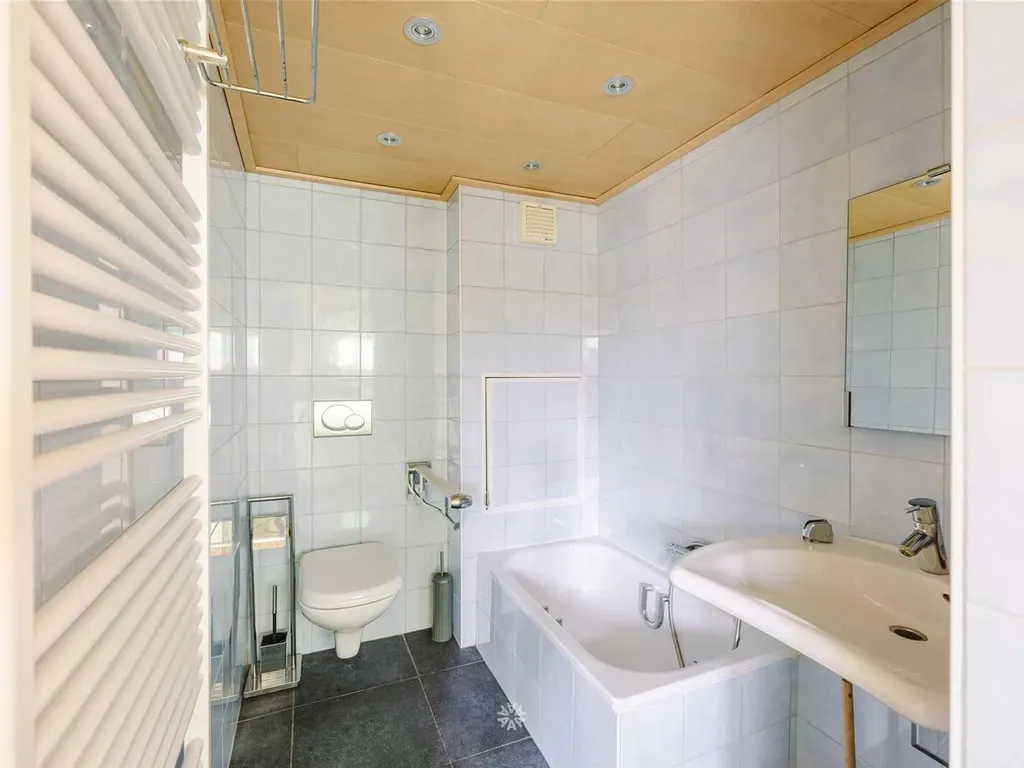 Drie volwaardige slaapkamers, een praktische berging/ dressing en een badkamer met douche, toilet en lavabomeubel.