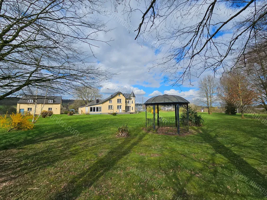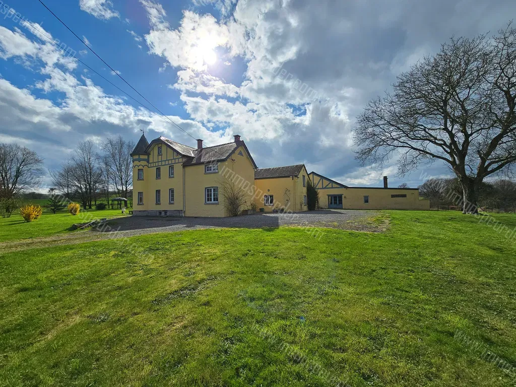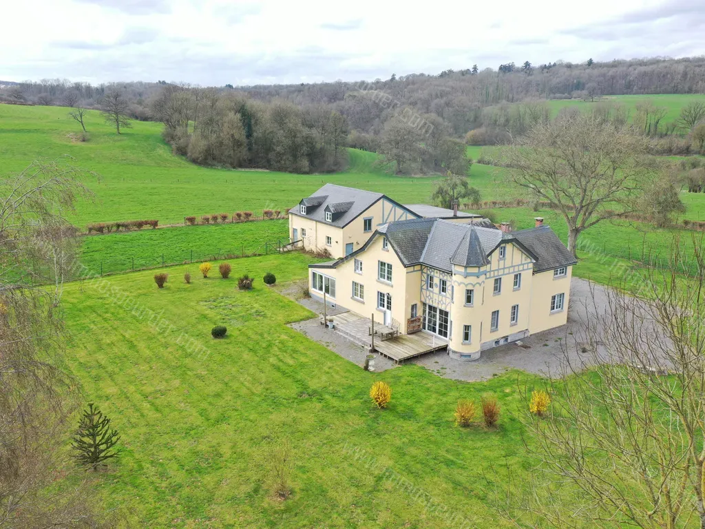 Chardeneux 1 - 5377 Bonsin - Superbe propriété d'exception située à Chardeneux (Somme-Leuze), l'un des plus beaux villages de Belgique, entièrement rénovée en 2009. Cette élégante demeure de maître se trouve à seulement 10 minutes du centre de Durbuy. Les matériaux de haute qualité utilisés comprennent des cheminées et des sols en marbre, un toit en ardoises naturelles, des moulures et motifs en staff, des portes et parquets en chêne, ainsi qu'un superbe escalier en hêtre menant à la tour.