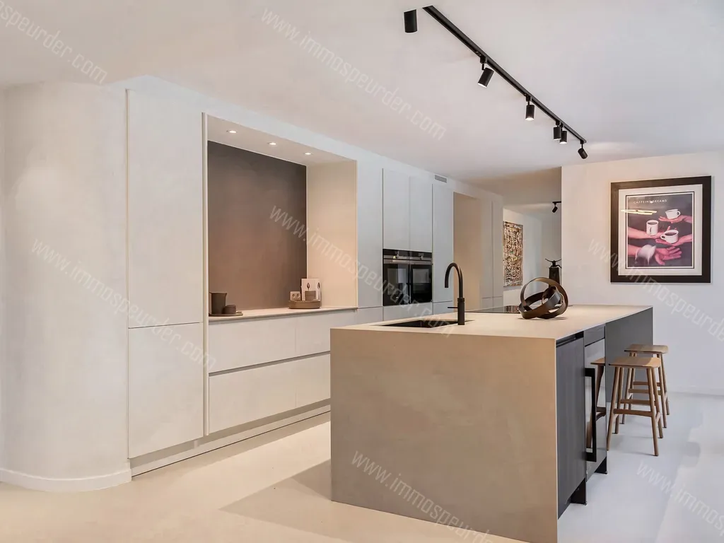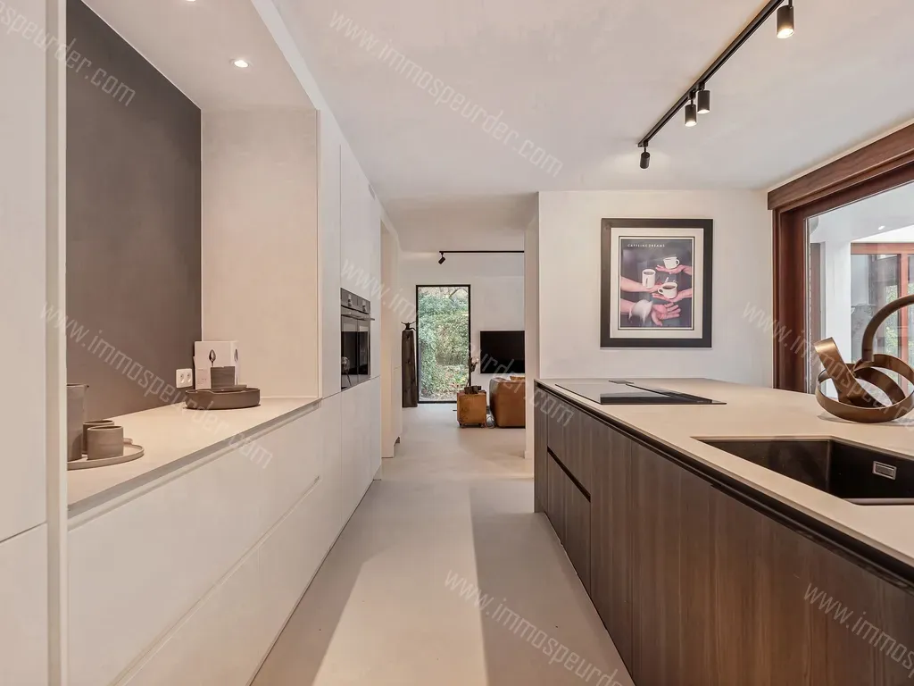 - een volledig geïnstalleerde open keuken met inbouwapparatuur van SIEMENS, eiland incl. kookplaat NOVY, ingebouwde kasten alsook een dubbele gootsteen + quooker kraan , AEG wijnkoeler met open zicht op de tuin en het terras door het grote schuifraam