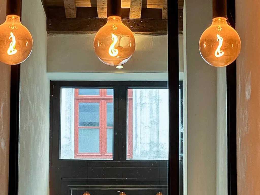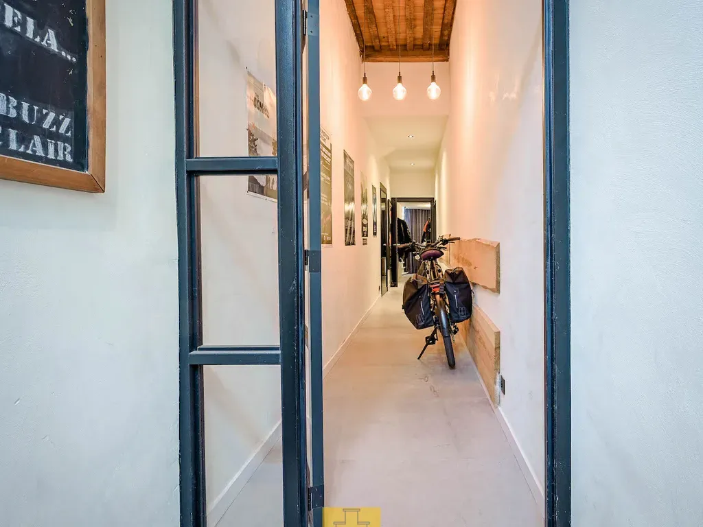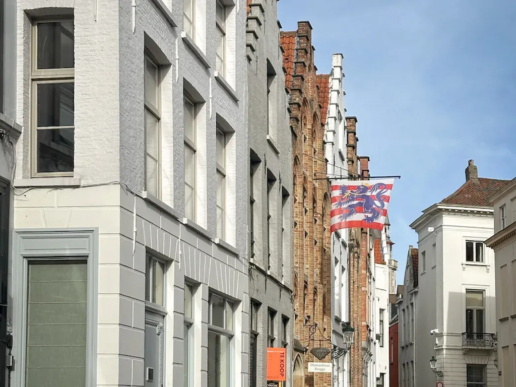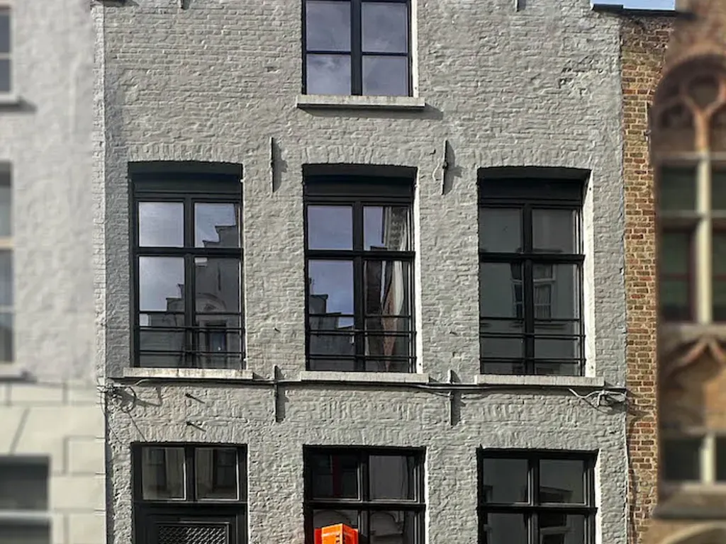 Cordoeaniersstraat 3 - 8000 Brugge - Rustig gelegen binnen de eerste stadsomwalling, op slechts een steenworp van de Markt, een pittoreske straat die voor het eerst werd vermeld in de 14e eeuw – genoemd naar de hier gevestigde leerbewerkers uit Cordoba - hoge trapgevelwoningen en herenhuizen met standing, voornamelijk privé bewoond, enkele exclusieve handelshuizen. Het huis ‘land van belofte’ dat we hier aanbieden, valt meteen op. Een ranke grijs geschilderde trapgevel met hoge raampartijen. Het is een diephuis met 3 traveeën en 2 bouwlagen onder een zadeldak. Het pand kreeg heel recent een bijzonder geslaagde update op zowel technisch, energetisch als op esthetisch vlak met oa een ecologische gietvloer op het gelijkvloers, nieuwe leidingen sanitair, nieuwe verwarmingsketel, maatwerk keuken, nieuwe badkamer, airco. Voordien werden dak en ramen al vernieuwd en werd het gelijkvloers voorzien van een lichtstraat. Alles gebeurde met een groot hart en respect voor de authenticiteit van het pand (hoge balkenlagen, dubbele deuren, brede plankenvloeren, sublieme deuren, dakgebinte, gewelfde kelder). Het geheel geniet van een perfecte lichtinval, loopt vlot in elkaar en biedt een waaier aan mogelijkheden. De Kraanrei die in de middeleeuwen het pand achteraan afsloot (en waarlangs de handelsgoederen werden weg gevaren) werd in 1790 overwelfd. Nu is hier een zalige terrastuin met een bijzonder avondlicht. Kelderverdieping : tongewelfde kelder onder de volledige woning, te bereiken via bakstenen trap en onderverdeeld in 3 compartimenten, vooraan staat de nieuwe verwarmingsketel. Gelijkvloers: inkomsas, diepe gang met fietsvoorzieningen, traphal met toilet, leefruimte met royale zithoek met schouw/kachel, eetkamer, eigentijdse open keuken met inox werkblad, alle toestellen en ruime ontbijt- of aperitiefhoek, slaapkamer, dressing en badkamer met dubbel lavabomeubel en inloopdouche. 1ste verdiep: in het achterhuis is er een salon met badkamer ensuite (douche en toilet) en trap naar een slaapkamer op de 2de verdieping, in het voorhuis is er een open masterbedroom met extra leefruimte aan de straatkant met kitchenette en een badkamer met ligbad, dubbele lavabo en toilet. 2e verdiep, voorhuis : een open zolderruimte onder het bijzonder knappe dakgebinte (systeem pen en gat en geïsoleerd), te bereiken via vaste trap. Hier kunnen twee volwaardige slaapkamers ingericht worden. G-score:C-P-score:C