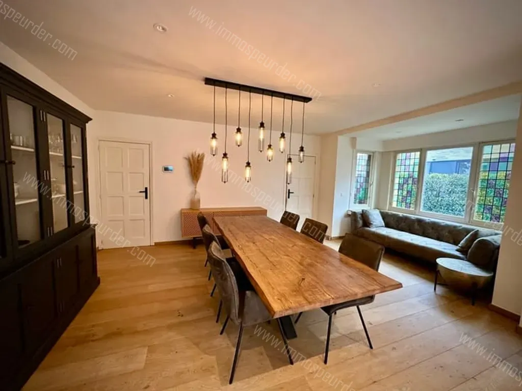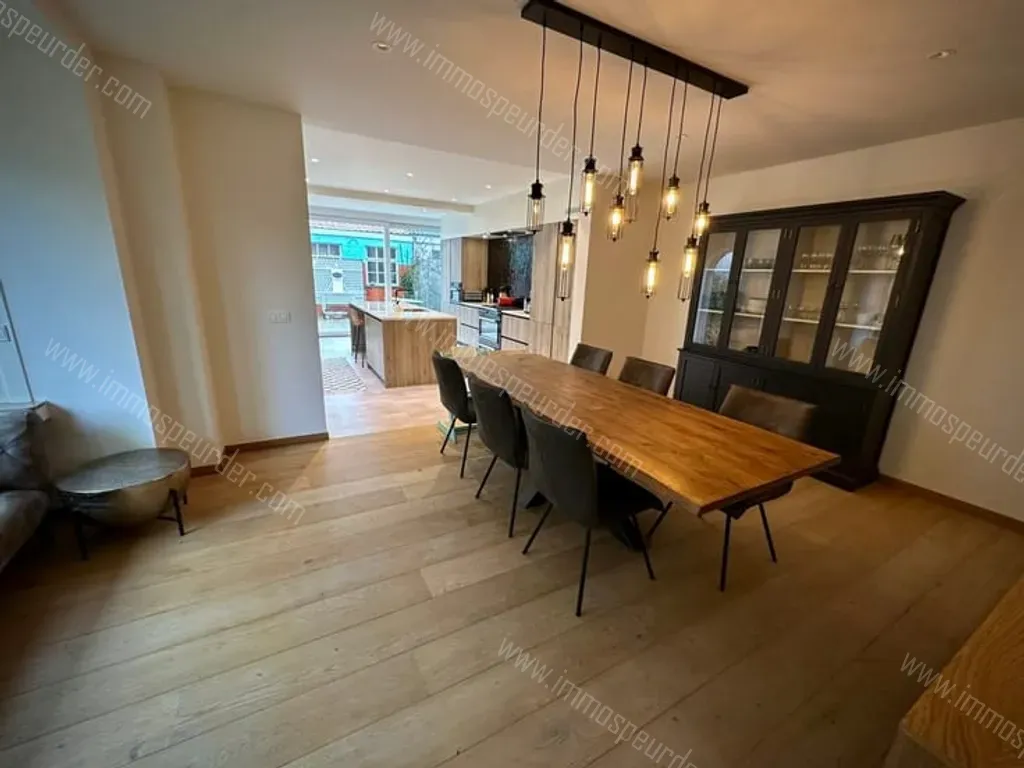 Aan de achterzijde van de woning bevindt zich een ruime eetkamer met zitgedeelte in de erker en aansluitend een lichtrijke en volledig uitgeruste open keuken met een hoogstaande afwerking. Bestaande uit een groot keukeneiland met gootsteen en bargedeelte, alsook een groot fornuis met gaspitten en stoomoven van het merk SMEG...