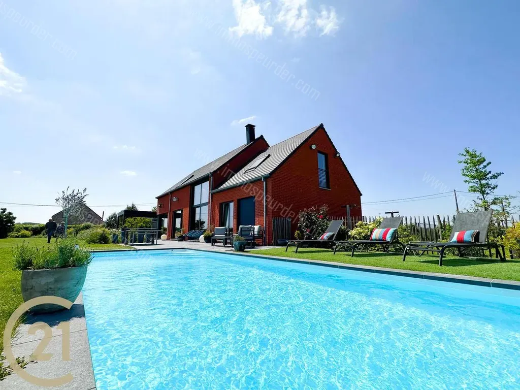 Jardin/ext : Nous retrouvons un jard aménagé et clôturé de +/-2.000m² (piscine et vergé), terr +/-150m² - pergola (screen et chauffage). Nous avons 3 park à l’ext de la propriété, un espace park devant l’habitation et un carport 2 voit.
