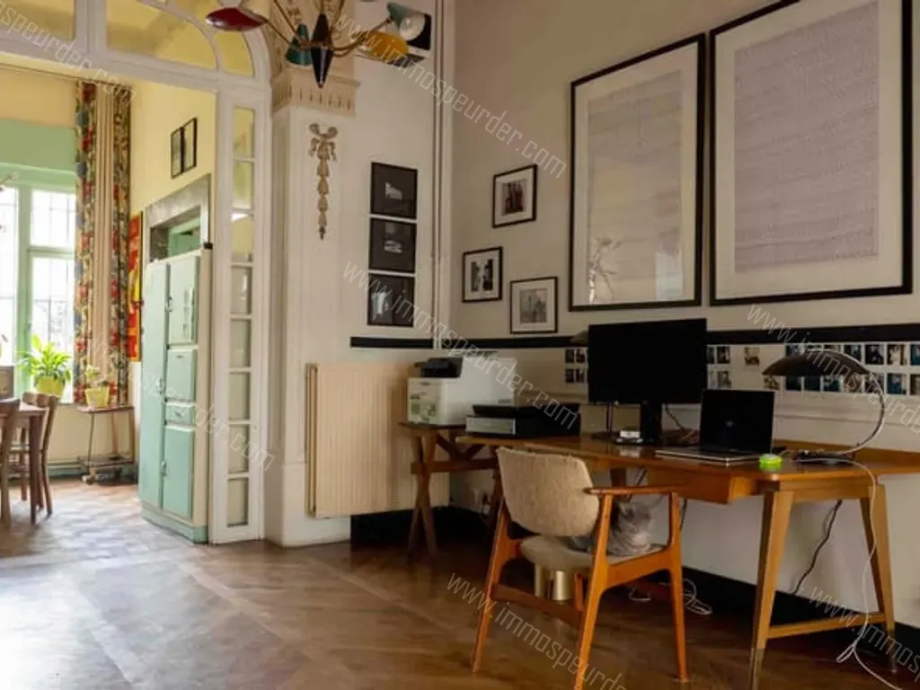 La maison séduit par sa douce atmosphère, ses volumes généreux, ses hauts plafonds, ses cheminées, ses moulures, ses portes et son joli jardin sans vis-à-vis. Au rrez-de-chaussée dans lesquelles le charme de l’ancien est omniprésent, le hall d’entrée dessert un vaste living, un bureau, une salle à manger et une cuisine donnant accès au jardin. A l’entresol, une chambre. Au premier étage, on retrouve un bureau, une chambre, un dressing et une salle de bains, chaque pièce étant agrémentée d’éléments décoratifs d’époque. Le deuxième étage se compose d’une chambre avec moulures, d’une pièce de vie avec cuisine équipée, ainsi que d’une salle de bains dotée de carrelage d’époque. Au troisième étage se trouve un appartement et un studio pour étudiants. Au sous-sol sont répartis une ancienne cuisine cave, un atelier, une cave à vin, une buanderie, une cave à charbon et une cour anglaise, ainsi qu’une réserve pour l’eau de pluie.