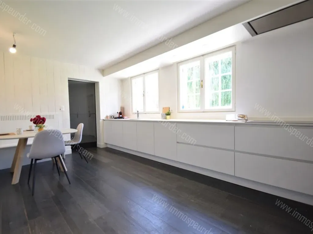 Gelijkvloers: inkomhal met gastentoilet en vestiaire, ruime woonkamer met open haard, recent vernieuwde kwaliteitskeuken (met composiet werkblad veel kastruimte en toestellen: kookplaat, dampkap, oven, microgolfoven, vaatwas, koelkast en spoelzone), ruime berging, technische berging, dubbele garage.