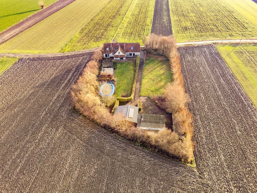 Sint-Jobstraat 1-3 - 8340 Damme - Deze woning op huisnummers 1 en 3 bereikt u via een straat waarvan u als enige bewoners gebruik maakt. De idyllische ligging in een oase van groen combineert landelijke vergezichten rondom de woning met de rust die u vindt aan de vijver of bij uw eigen dieren. De woning beschikt namelijk over een stalling en bijgebouwen. Daarnaast is er ook een paddock. Vanuit deze groene omgeving geniet u van een vlotte verbinding met Knokke, Brugge en het binnenland. De woning bestaat momenteel uit een grote en een kleine woning. De grote woning bestaat uit een inkomhall met toilet, mooie woonkamer met mooie vergezichten, parket en een nieuwe haard, er is een erg ruime leefkeuken met eethoek, kelder, een berging en bureel/speelkamer. Boven zijn er 4 slaapkamers, waarvan een masterbedroom met een ensuite badkamer, een aparte douchekamer met infraroodcabine, apart toilet. In het aanpalende tweede huis zijn er 2 slaapkamers, een dressing, een ingerichte douchekamer met apart toilet, een ingerichte keuken en een mooie ruime woonkamer. Van deze ruime woning op idyllische locatie uw nieuwe thuis maken? Contacteer Bonne Vastgoed 7 op 7 voor de prijs en meer info via 0468/10.40.40 of info@bonnevastgoed.be