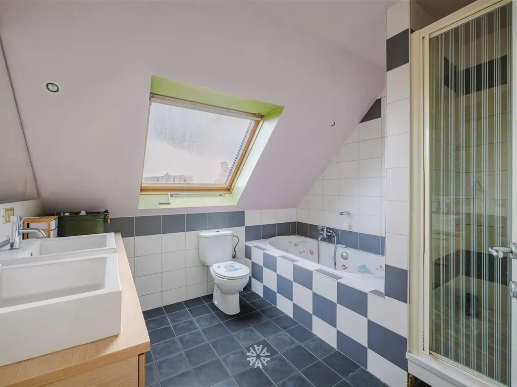 Inkomhal met gastentoilet, leefruimte met ingerichte keuken, wasplaats/berging. Op de verdieping zijn er drie slaapkamers en een badkamer met ligbad, douche, toilet en dubbele lavabo. Verder beschikt de woning over een zonnepanelen, zwembad, aangelegde tuin, oprit, carport.