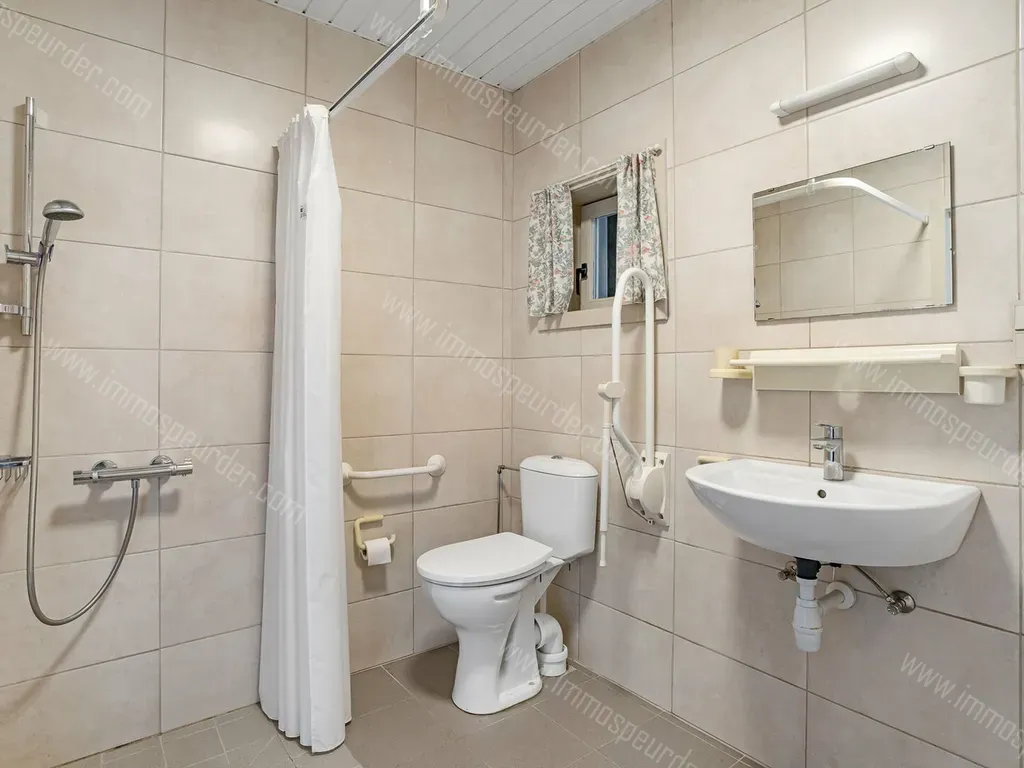Via de inkomhal komen we binnen op het gelijkvloers. Hier is er een ruime woonkamer met veel natuurlijk lichtinval, een ingerichte keuken, een bijkeuken en een badkamer met douche, toilet en lavabo. Achter het woongedeelte is er een grote ruimte te vinden die voor meerdere doeleinden kan gebruikt worden (extra kamers, bureel, werkplaats, speelruimte)