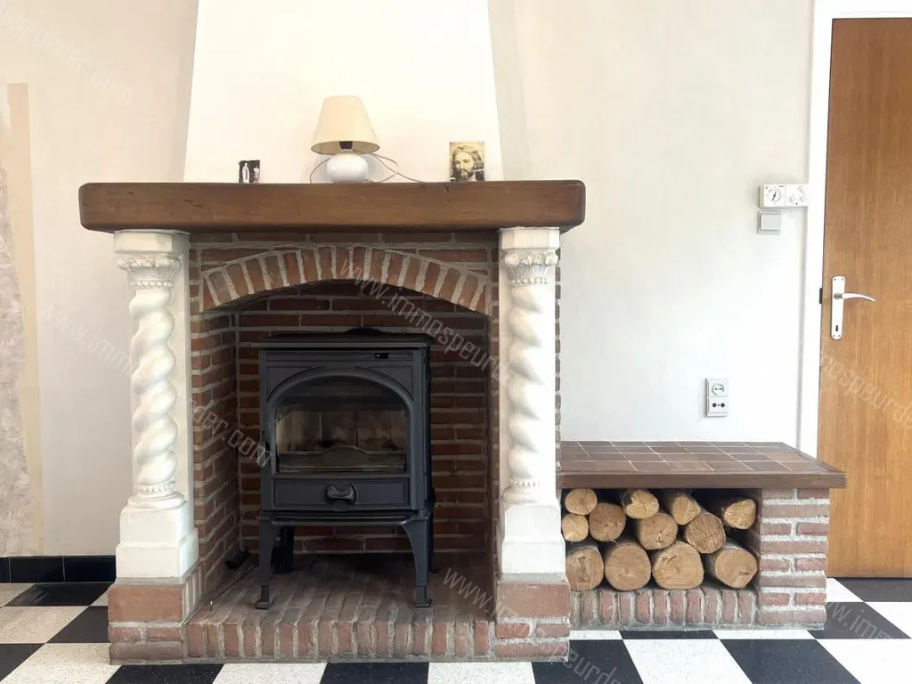 We treden de woning binnen via de inkomhal. Deze laatste biedt rechtstreeks toegang tot de lichtrijke en zonnige living, voorzien van een houtkachel. Aangrenzend bevindt zich de keuken (kookplaat, oven, dampkap, spoelbak) met praktische berging + wasplaats + apart toilet.
