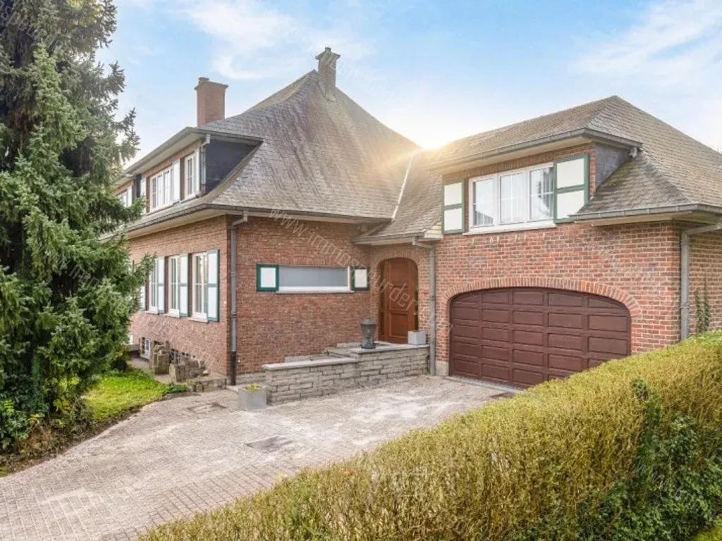 Indeling : Kelderverdieping : traphal - gang - waskelder (12m²) - provisiekelder (4m²) - 3 kelders (10m² - 21m² - 18m²). Gelijkvloers : inkomhal - gang (10m²) - bureel of slaapkamer (10m²) - vestiaire en afz. toilet - woonkamer (30m²) - grote, ingerichte keuken (24m²) - garage met doucheruimte (31m²) - terras en tuin. Verdieping : nachthal (3m²) - badkamer (5m²) uitgerust met badkamermeubel met dubbele wastafel, toilet en ligbad - 3 slaapkamers (11m² - 17m² - 13m²) - 2e traphal (10m²) - grote slaapkamer (23m²) met badkamer (4m²) uitgerust met badkamermeubel met enkelvoudige wastafel, toilet en ligbad.