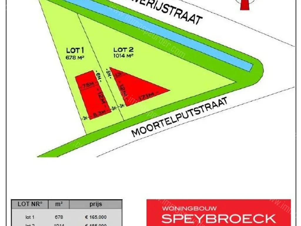 Opp lot 2 : +/- 1.014 m² Prijs : € 185.000