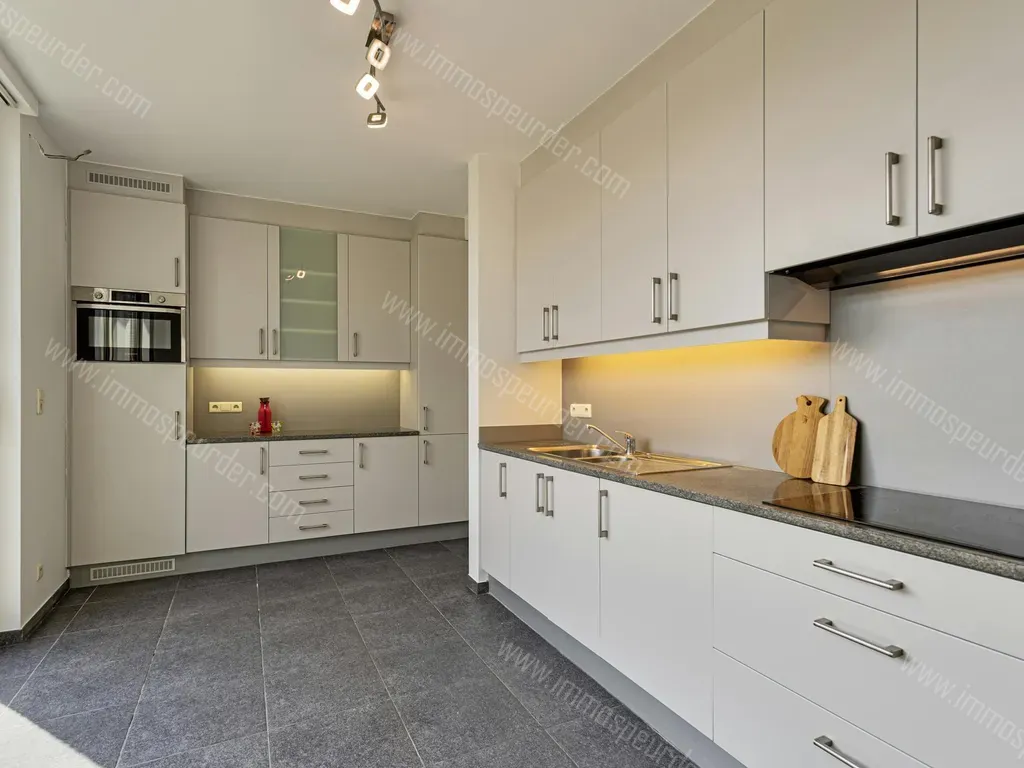 Inkomhal met gastentoilet en vestiaire, ruime leefruimte bestaande uit 2 delen (zithoek en eetkamer), volledig ingerichte keuken, garage