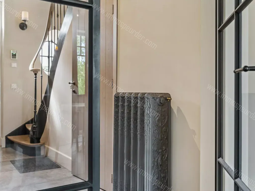 De woning zelf straalt klasse en comfort uit. Bij het binnenkomen op het gelijkvloers word je verwelkomd in een ruime woonkamer met een panoramisch uitzicht op de tuin en vijver. Aangrenzend bevindt zich een aparte bureauruimte, perfect voor thuiswerken in een rustige omgeving. De open eetplaats, centraal gelegen tussen de woonkamer en de keuken, biedt eveneens zicht op de tuin. De keuken zelf is uitgerust met hoogwaardige toestellen, waaronder een Lacanche fornuis, Miele apparatuur en een geclimatiseerde wijncel met plaats voor meer dan 1.200 flessen. Naast de keuken is er nog een handige wasruimte.