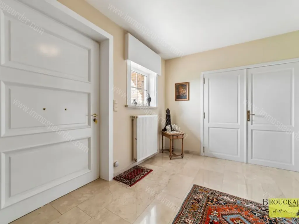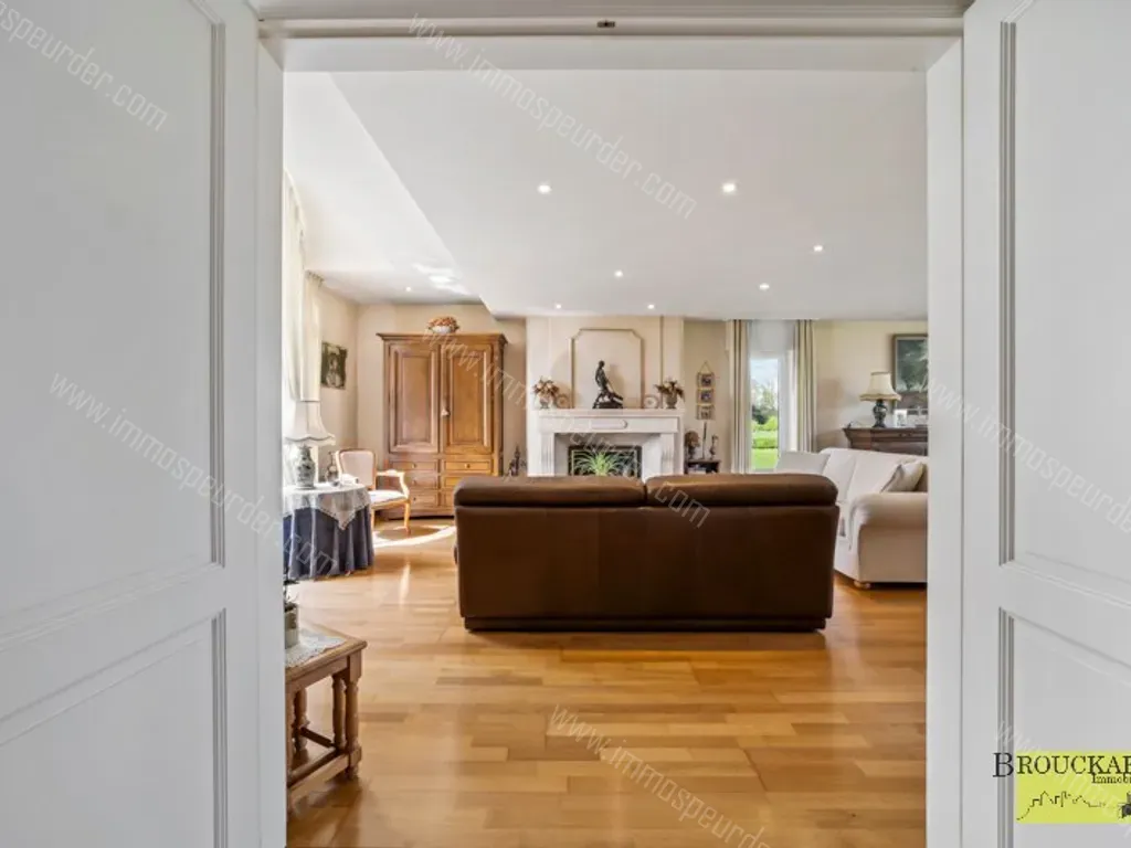 Gelijkvloers : een royale inkomhal met gastentoilet en lavabo. Deze brengt ons verder naar de lichtrijke leefruimte voorzien van een open haard. Een afzonderlijke ingerichte keuken die erg ruimtelijk aanvoelt met inbouwtoestellen en keukeneiland afgewerkt met een natuursteen werkblad.