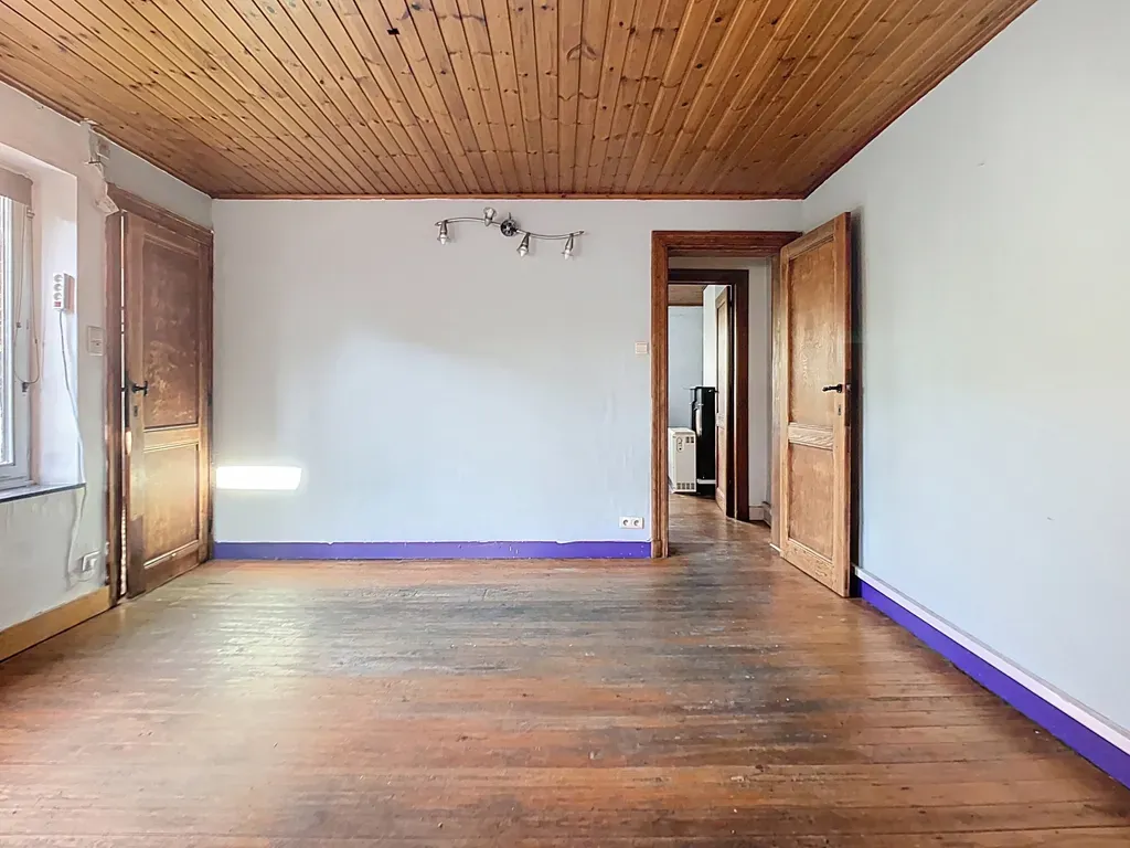 Dans une rue calme non loin du centre d'Esneux, ne manquez pas cette jolie maison avec un agréable jardin. Elle offre un beau potentiel et se compose, en rez-de-chaussée, d'un hall d'entrée avec toilette, d'un séjour, d'une cuisine et d'une salle à manger. Le premier étage dispose d'un hall de nuit, d'une chambre et de deux pièces en enfilade (chambre + bureau/dressing/salle de jeux) et d'une salle de bains. Le 2e étage est composé d'un grenier de rangement. Au sous-sol, vous trouverez une vaste buanderie donnant sur le jardin (poss. Cuisine d'été) et une cave. Travaux de rénovation à prévoir (actuellement chauffage électrique + plusieurs poêles à pellets), toiture en tuiles non isolée, électricité non conforme, châssis en bois DV anciens. Plus d'infos et/ou visites au 04/222.21.21.