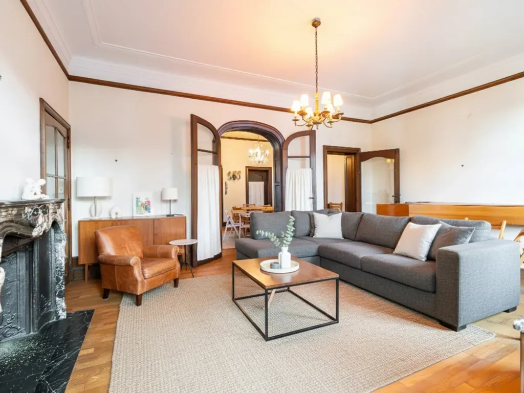 Op een steenworp van het Brugmannplein, aan de rand van Elsene, elegante burgerwoning ontworpen door L. Boghoms in 1915, met een bewoonbare oppervlakte van ± 440 m² (± 510 m² bebouwd) op een perceel van 2 a 65 ca met oostelijke oriëntatie. Brede gevel van 7 m, vijf slaapkamers en drie badkamers.