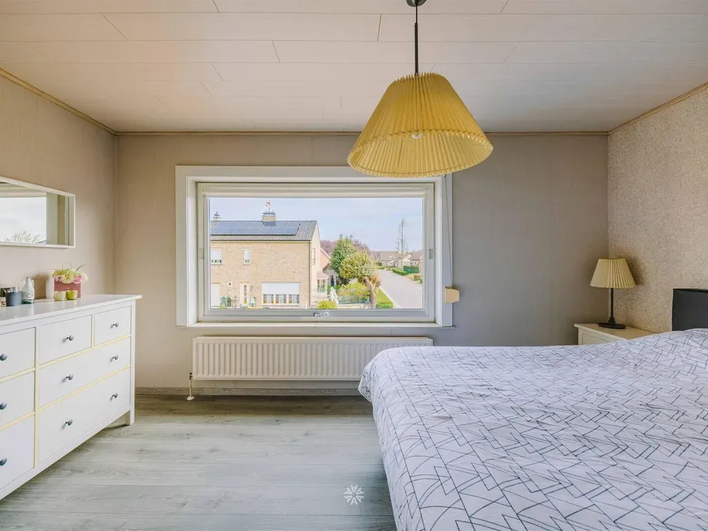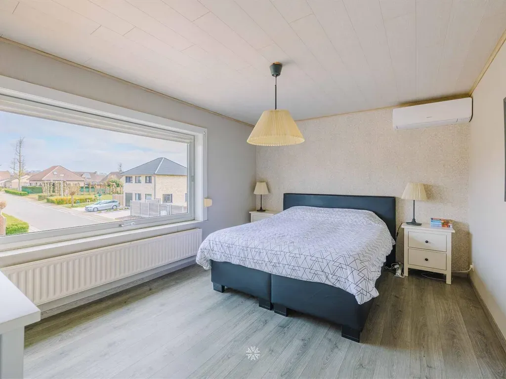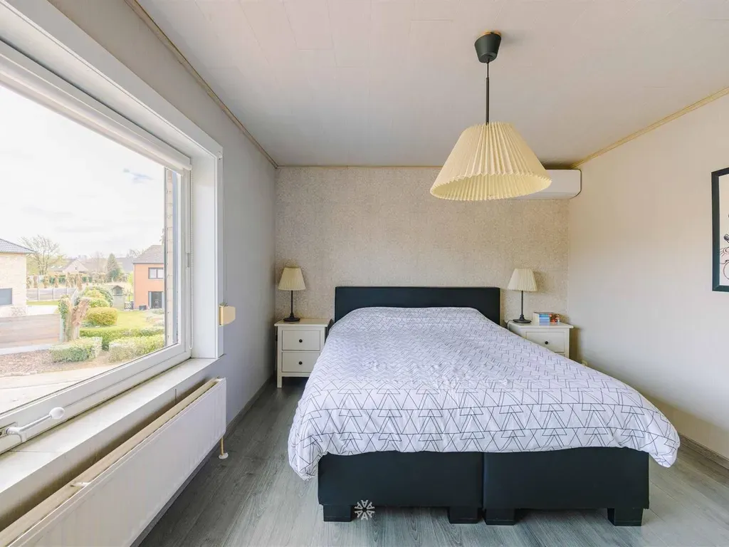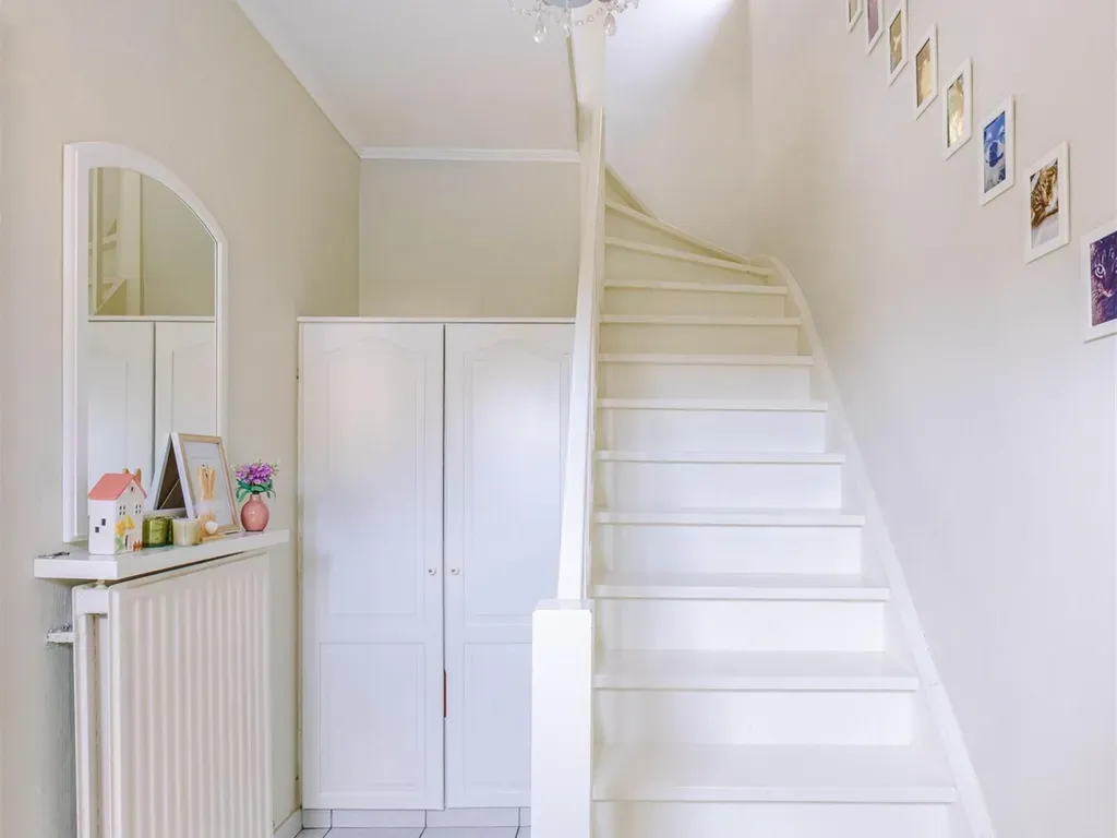Op de verdieping treffen we 2 ruime slaapkamers en een dressing. De badkamer is voorzien van een douche, een ligbad, een enkele wastafel en een toilet. Vanop de nachthall is er toegang naar een bergingszolder.